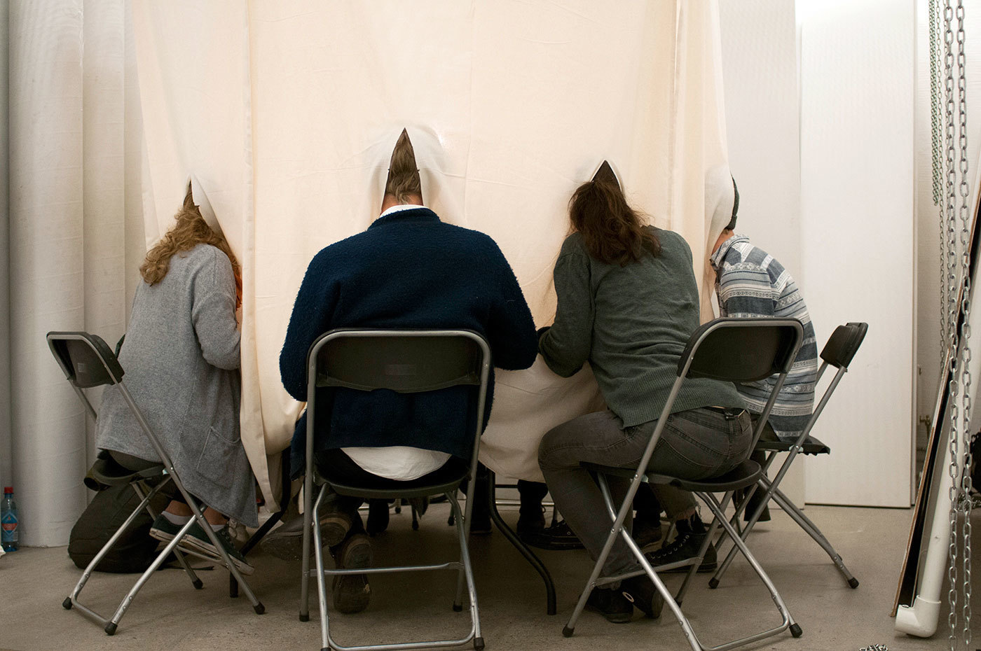 Til sist i utviklingsprosessen ble altså produktet en bordinstallasjon der publikum kan velge mellom avspillinger av dokumenterte møter. Publikum står henvendt mot hverandre og deler det som skjer på bordplaten. På et vis blir de andre ved bordet gitt rollen til de som mangler i rommet. Hendene som gestikulerer fremfor en oppleves nesten som ens egne. Kanskje publikum til og med kan få en opplevelse av å representere de romá som ikke er i rommet lenger. Kan denne manglende tilstedeværelsen vekke nysgjerrighet og refleksjon over publikums eget bilde av romá?