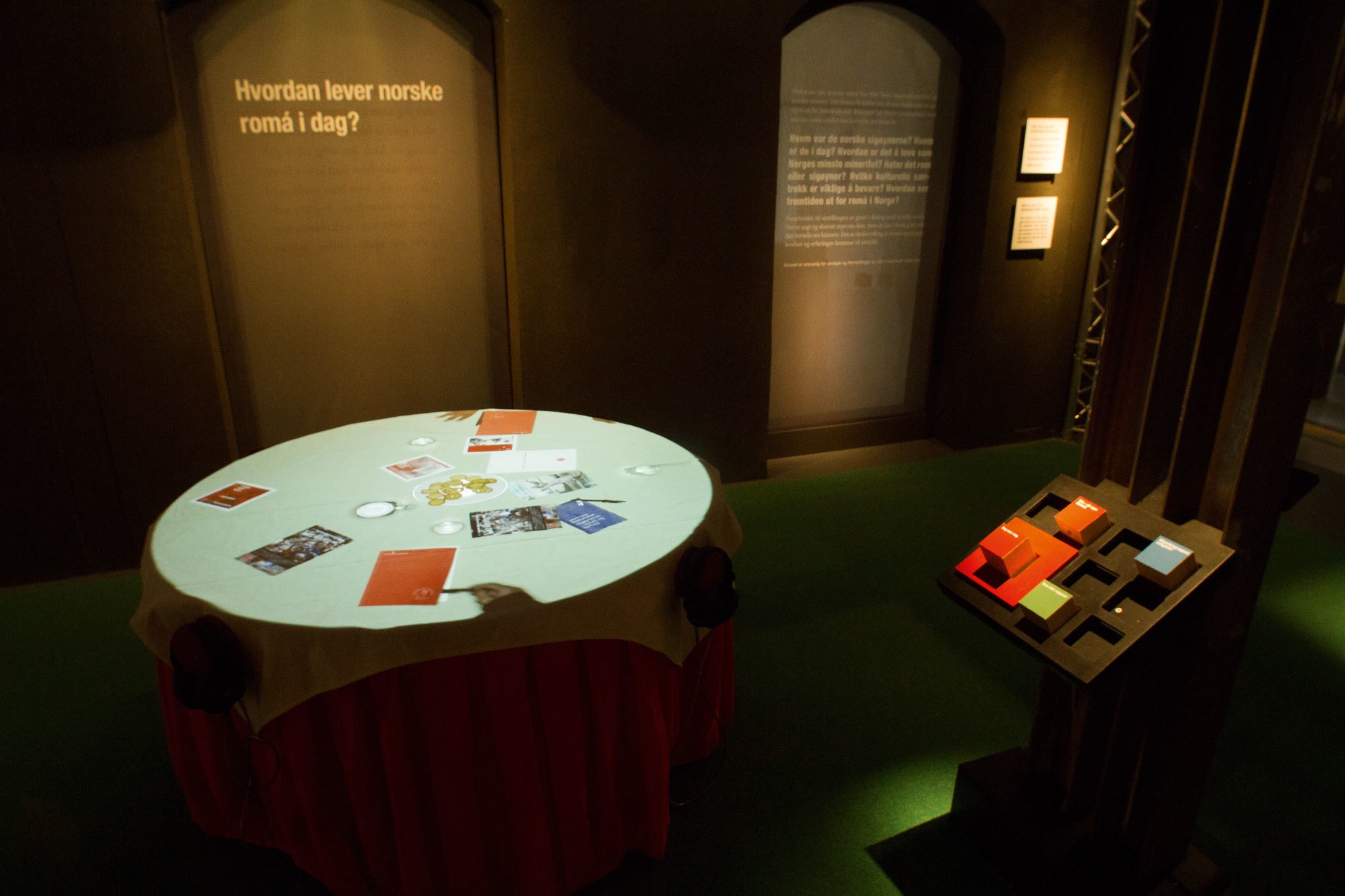 Developing table installations for the exhibition “Norvegiska Romá – Norwegian Gypsies. One People, Many Voices”.