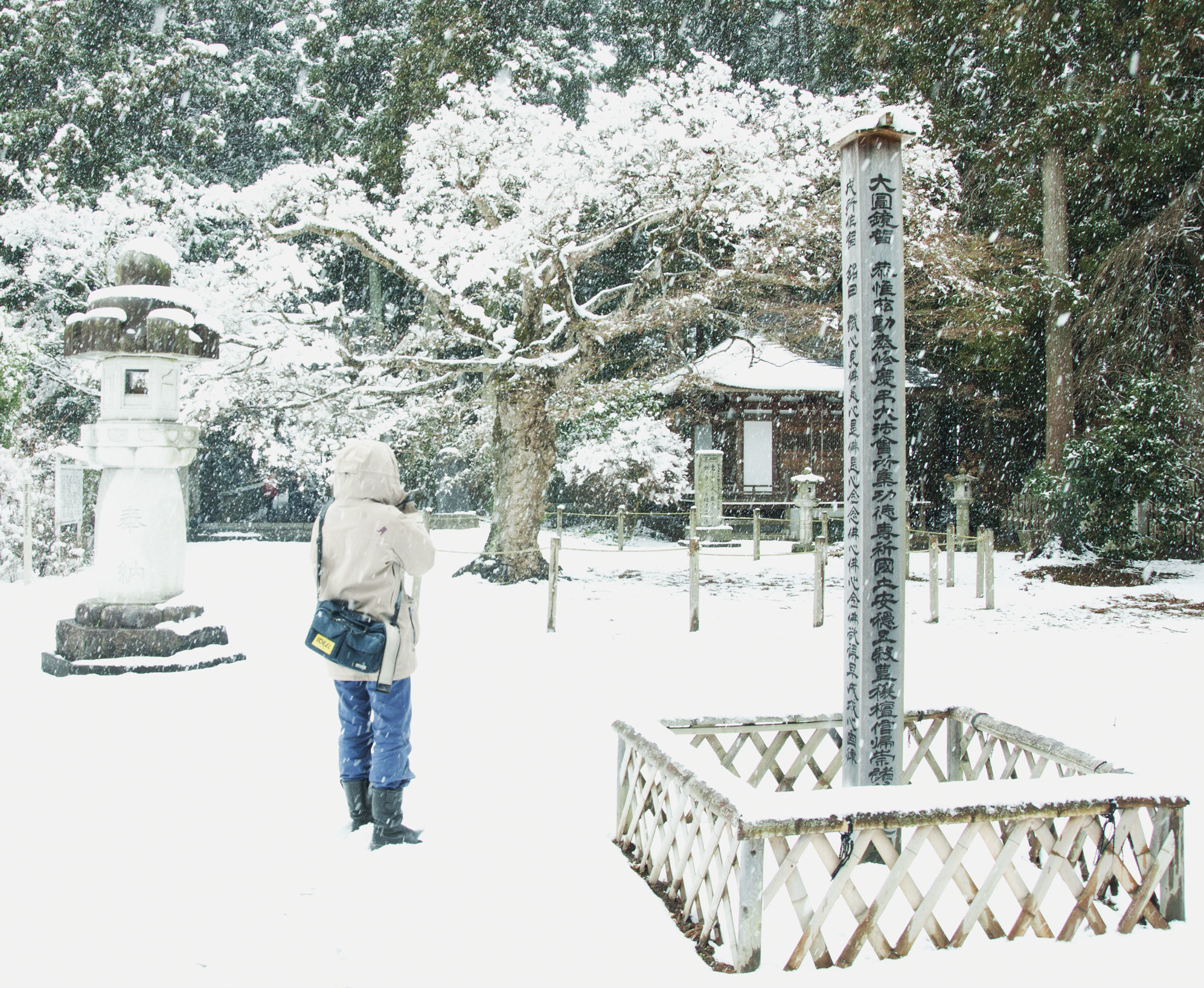 Utenfor et tempel på østkysten, nær kjernekraftverket som eksploderte. Beboerne i nærheten ble evakuert, og maks oppholdstid her er i dag satt til tre timer. Det er usikkert når det blir trygt å flytte tilbake, noen sier om minst 30 år. Vegetasjonen i området er påfallende gammel, med opptil 1000 år gamle trær.