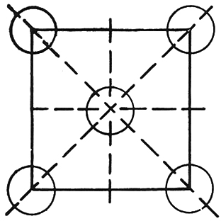 Norberg-Schulz tenkte på dette mens han arbeidet som Fulbrightforsker ved Harvard University i 1952 og 1953. Schindlers idé om visuell persepsjon var i det vesentlige et additivt system. Firefotsmodulen var ment å skulle fungere som en visuell målestokk som hjalp betrakteren til å ta mål av rommet, legge sammen de definerte enhetene og forme et mentalt bilde av rommets geometri. Men avstanden mellom stålsøylene var blitt for stor for å fungere som den visuelle grunnenheten i en slik additiv prosess. Var det mulig å oppfatte geometriske figurer på andre, ikke-additive måter? Norberg-Schulz fant en alternativ visuell teori i tekstene til Rudolf Arnheim (f. 1904), en viktig gestaltpsykolog og kunstkritiker. Arnheim påsto at synsinntrykkene var resultat av en sanseprosess basert på gjenkjennelige mønstre, som igjen var bestemt av hele strukturen i det man så på, ikke bare summen av delene. «[...Ethvert] visuelt mønster,» sier Arnheim, «fremstår som et organisert hele, der enkelte dominerende elementer bestemmer den overordnede formen og retningen på hovedaksene, mens andre elementer har underordnede funksjoner.»9 Norberg-Schulz tok denne gestaltteorien helhjertet til seg og begynte å tenke på synsinntrykk som gjenkjennelige mønstre. Hva ville dette si for utformingen av huset hans? Han følte at for at stålkonstruksjonen skulle fremstå som en organisert visuell helhet måtte han etablere et «dominerende element». Dette var den sentrale søylens kritiske funksjon: å fungere som fokuspunkt, noe som «samlet» de underordnede elementene i hovedakser, og som tydeliggjorde rommets kvadratiske hovedform.