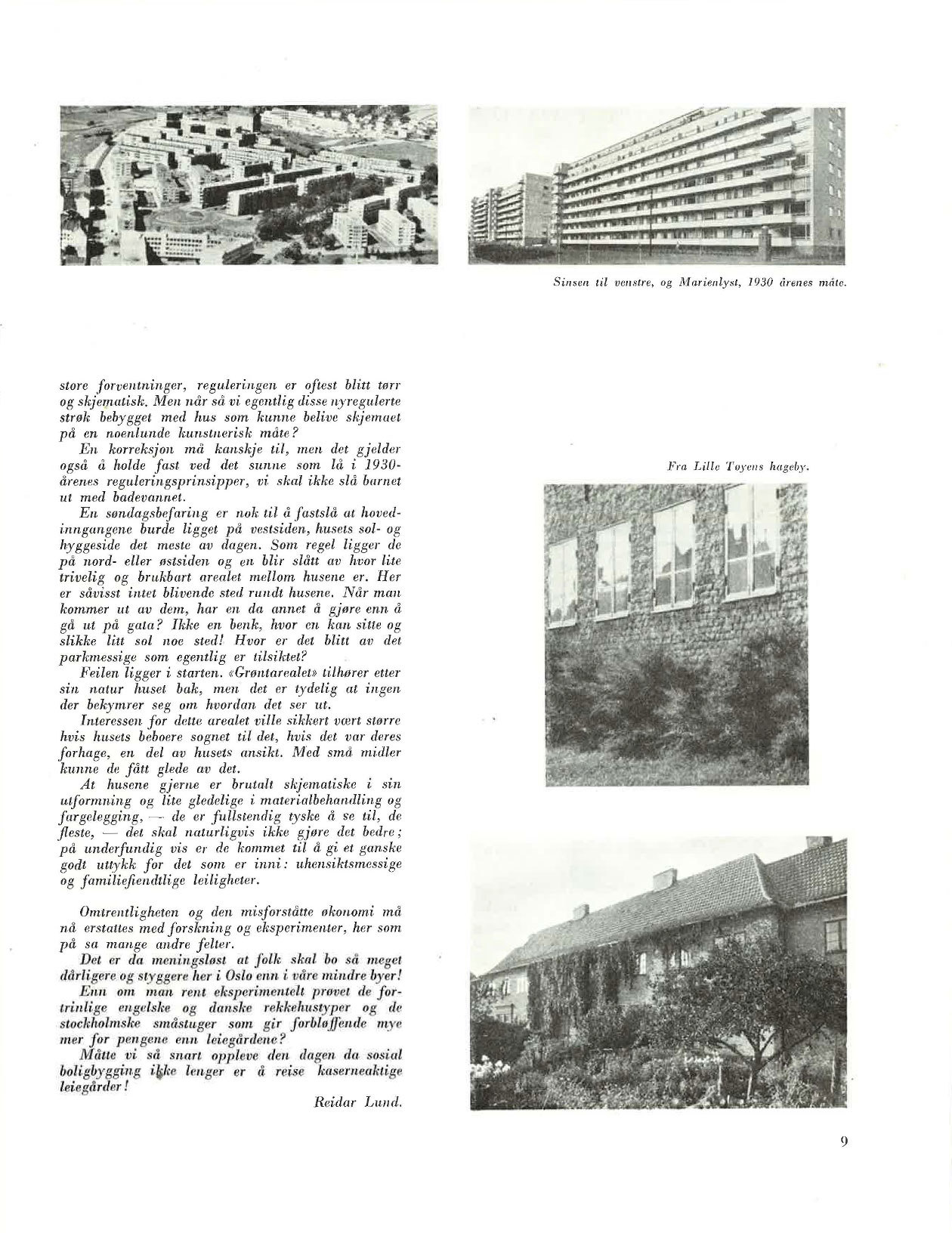 Artikler / Historie, teori På tur i boligstrøkene Av Reidar Lund 1 Publisert på nett 29. januar 2018. Opprinnelig publisert i Arkitektur N nr. 1-2 – 1946. For å få full tilgang på alt innhold i Arkitektur N kan du kjøpe eller abonnere på papirutgaven. Kopiere lenke til «På tur i boligstrøkene»