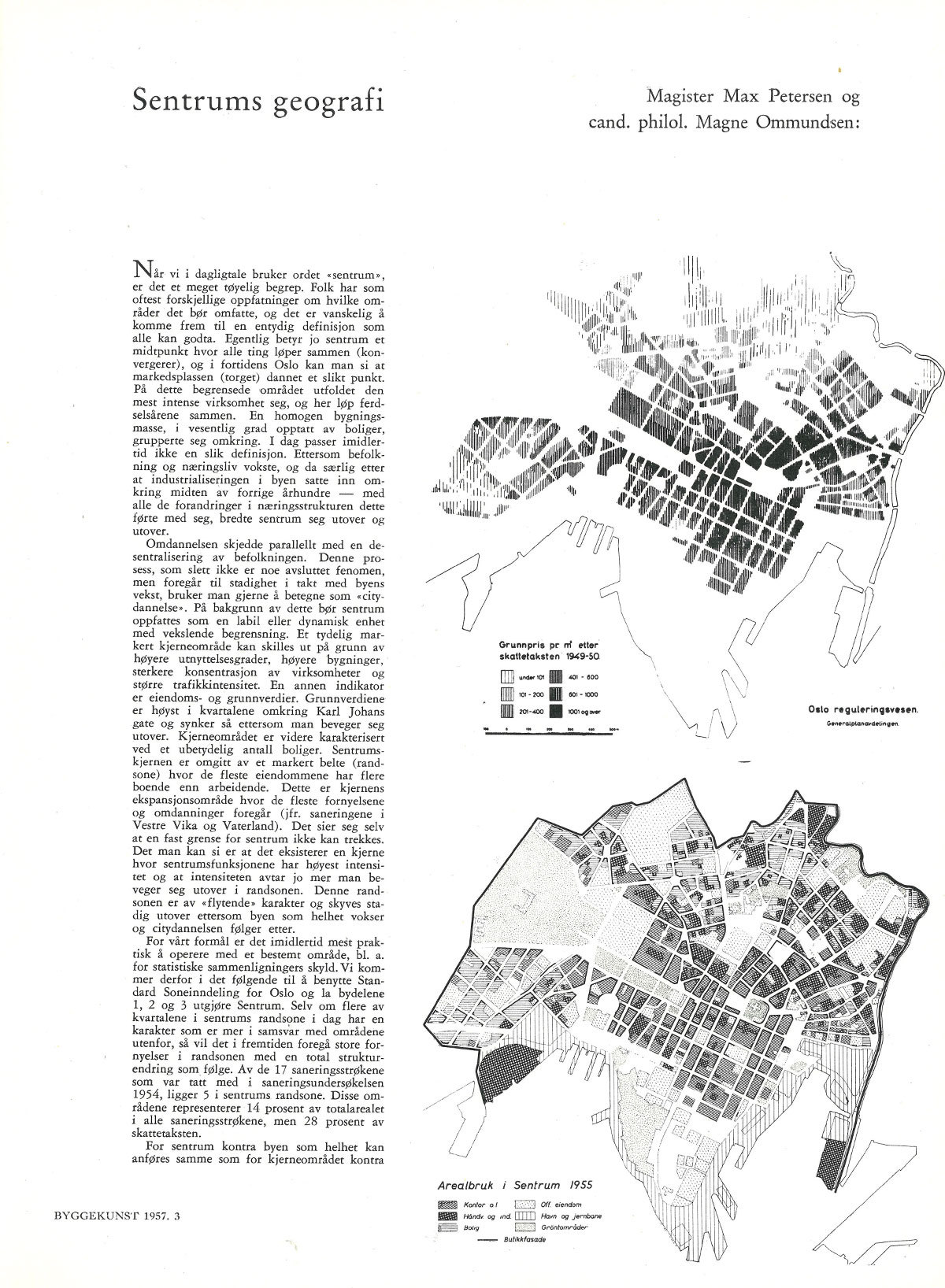 Artikler / Plan Sentrums geografi Av Max Petersen, Magne Ommundsen 1 2 Publisert på nett 13. november 2019. Opprinnelig publisert i Arkitektur N nr. 3 – 1957. For å få full tilgang på alt innhold i Arkitektur N kan du kjøpe eller abonnere på papirutgaven. Kopiere lenke til «Sentrums geografi»