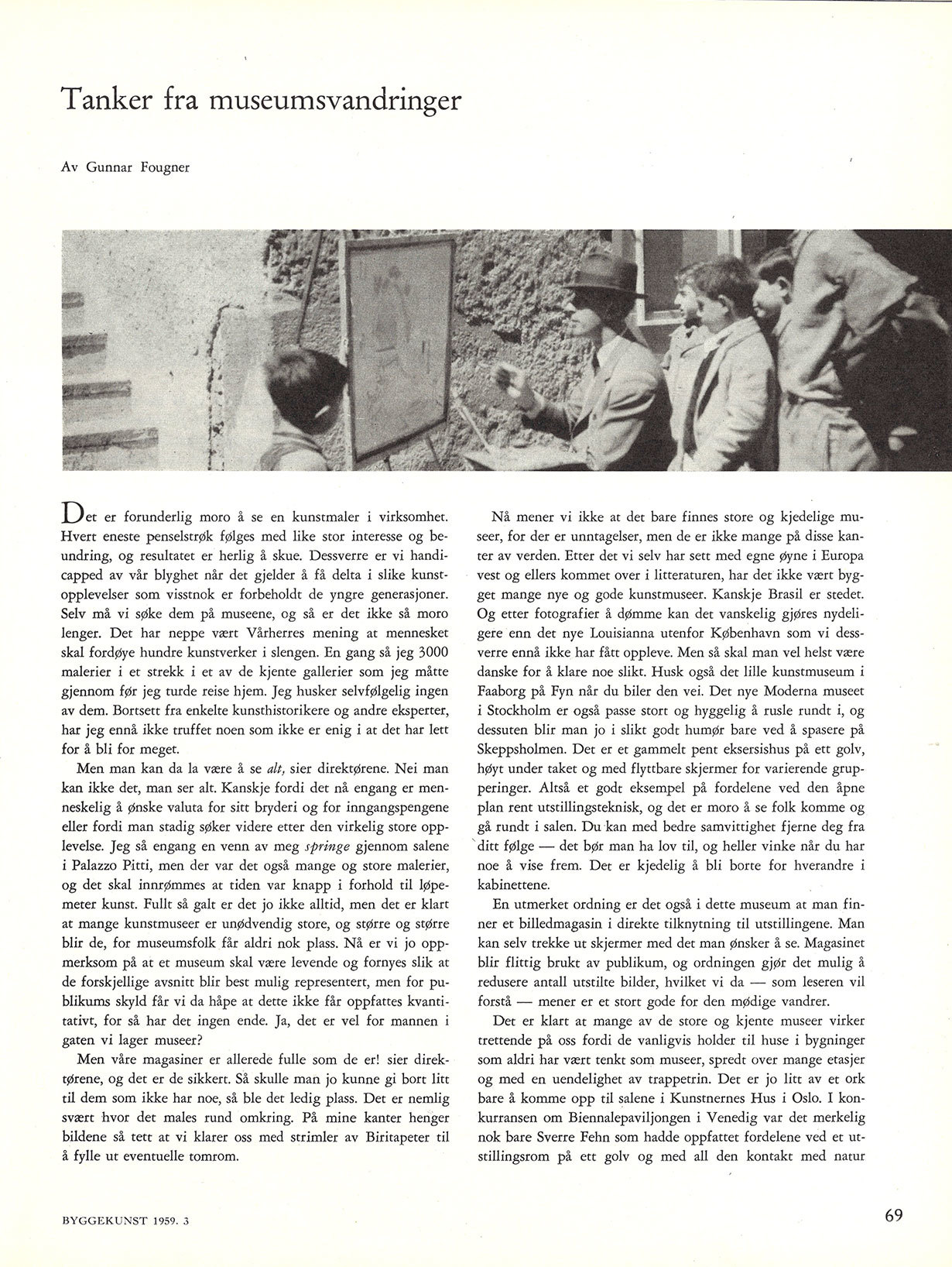 Artikler / Historie, teori Tanker fra museumsvandringer Av Gunnar Fougner Publisert på nett 18. februar 2020. Opprinnelig publisert i Arkitektur N nr. 3 – 1959. For å få full tilgang på alt innhold i Arkitektur N kan du kjøpe eller abonnere på papirutgaven. Stikkord kunstnernes hus Sverre Fehn venedig venesia venezia palazzo pitti louisianna Kopiere lenke til «Tanker fra museumsvandringer» 2