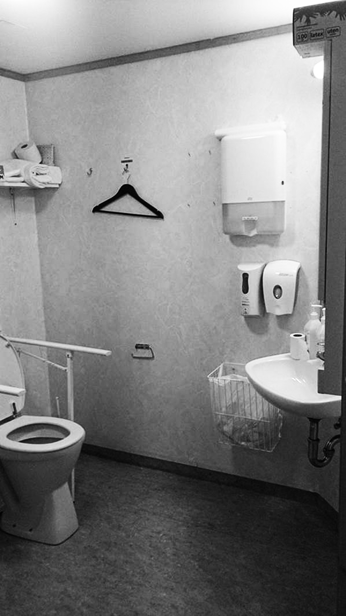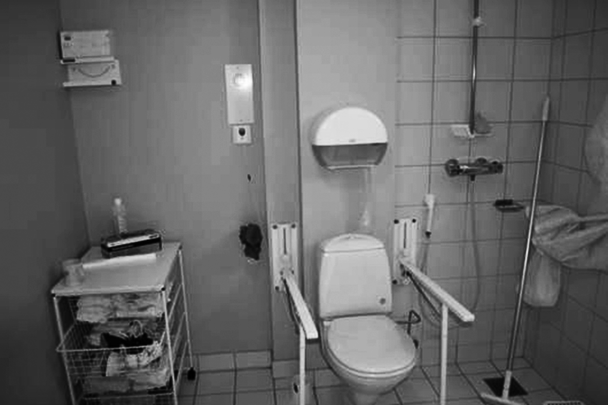 Ein rapport om funksjonaliteten til baderom som blei gjennomført i 2014 indikerer at utforming av sjukeheimar er basert på ein idé om at mest alle bebuarane treng hjelp av pleiar når dei er på toalettet, men slik er det ikkje.2 Ei kartlegging som blei gjort våren 2015, viser at meir enn halvparten av 478 bebuarar ved sjukeheimar i Bergen klarte seg åleine på toalettet.3