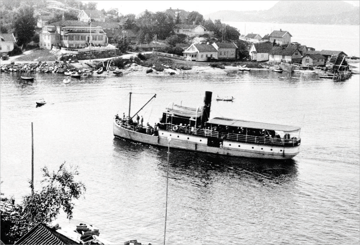 Families waiting for the steamer. Rødtangen Bad, around 1920.