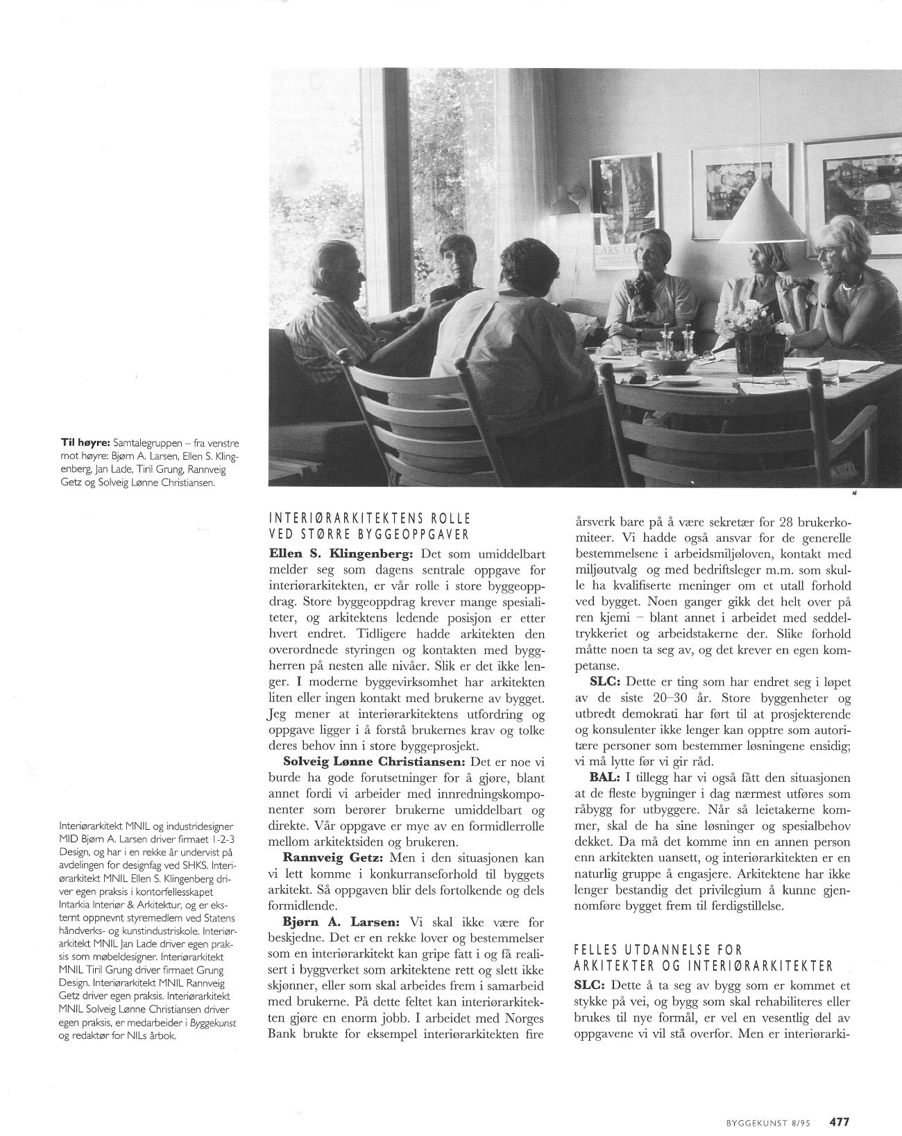 Samtaler mellom Ellen S. Klingenberg, Tiril Grung, Rannveig Getz, Jan Lade, Bjørn A Larsen og Solveig Lønne Christiansen, referert av Kjell Norvin.