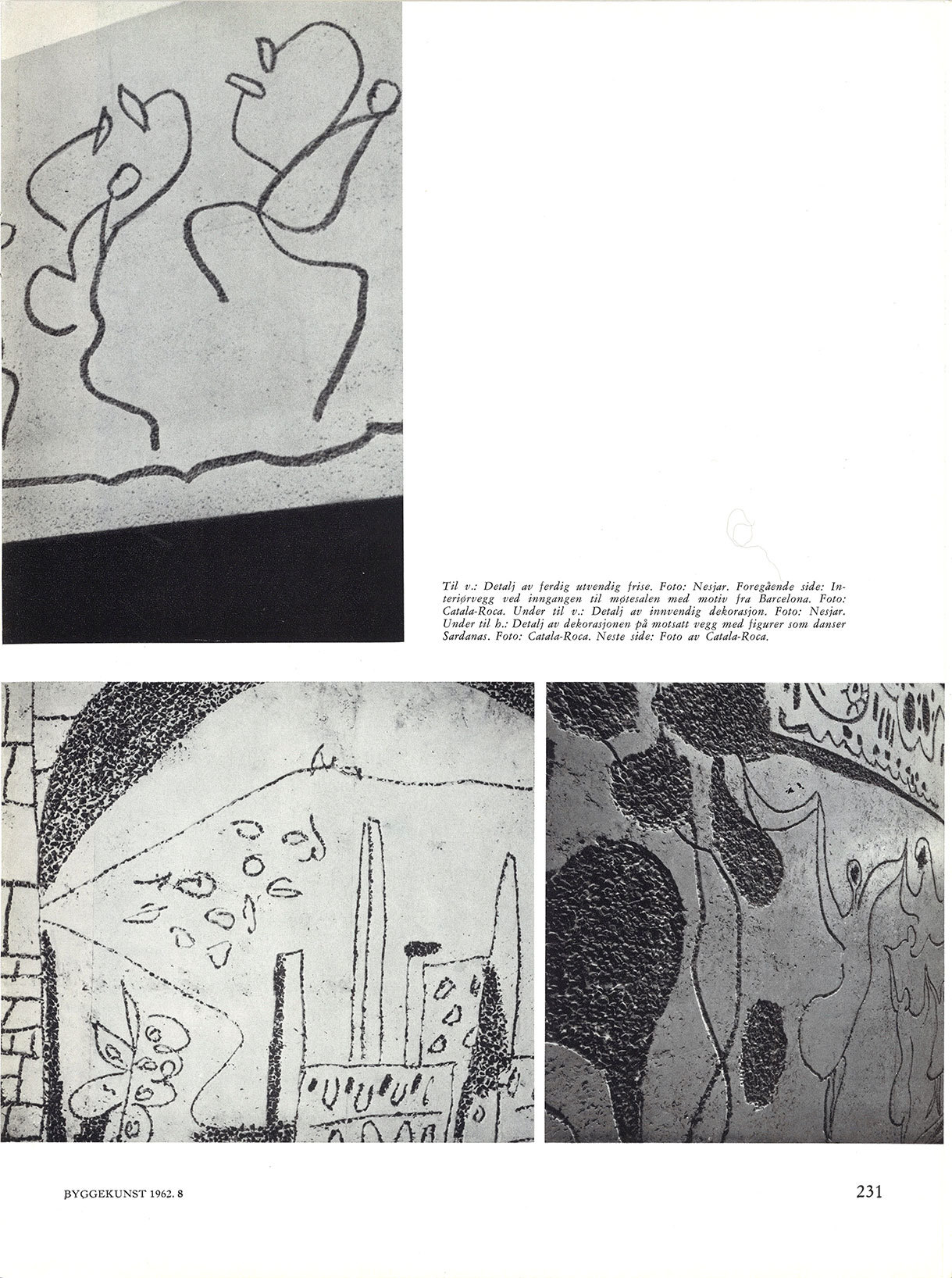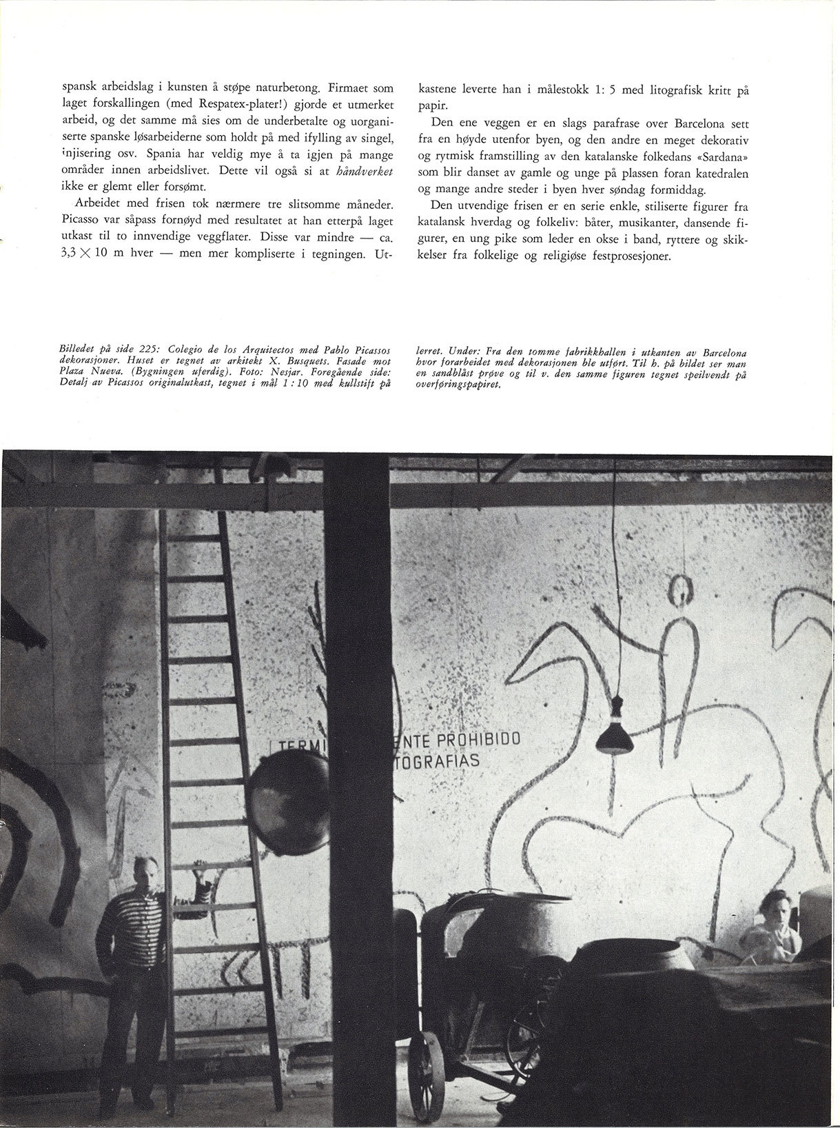 I 1959 vant den katalanske arkitekten Xavier Busquets konkurransen om det nye arkitektenes hus — Colegio de los Arquitectos — i Barcelona. Busquets henvendte seg til Picasso med forslag om at han skulle lage et utkast til en tredelt, utvendig frise, ca 60 x 4,25 m, som var tenkt utført i keramiske fliser. Picasso takket ja til oppgaven, men under forutsetning av at Nesjar ble hentet inn for lage en sandblåst frise i Naturbetong på samme måte som han hadde gjort i regjeringskvartalet i Oslo.