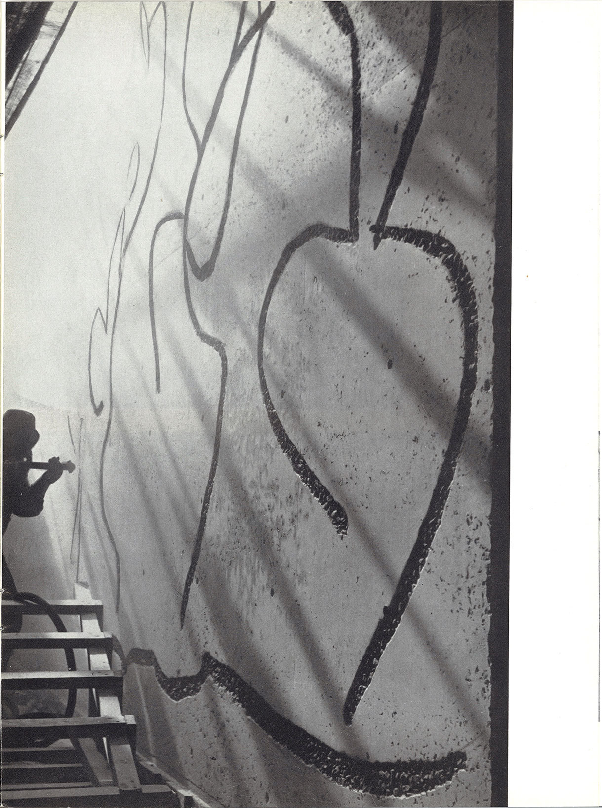 Carl Nesjar beskriver samarbeidet med Picasso og Erling Viksjø ifm. betongfrisene i naturbetong på Arkitektenes hus, Barcelona.
