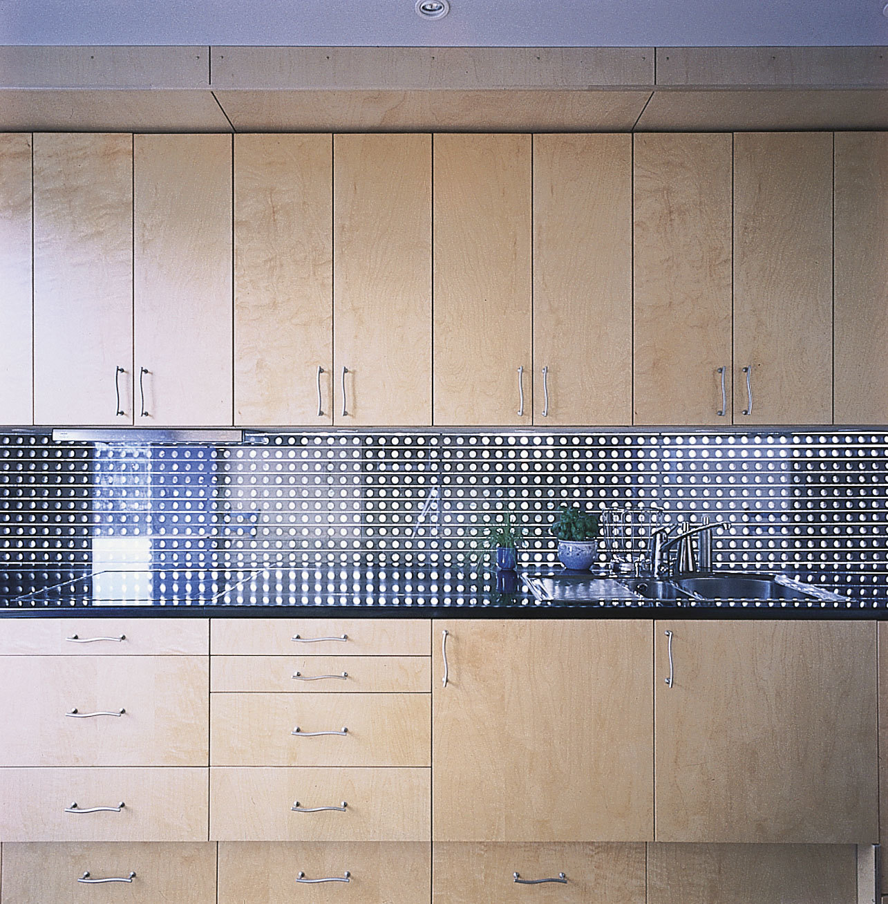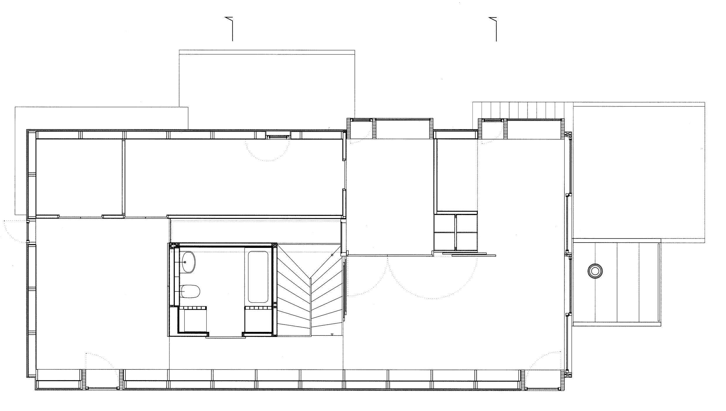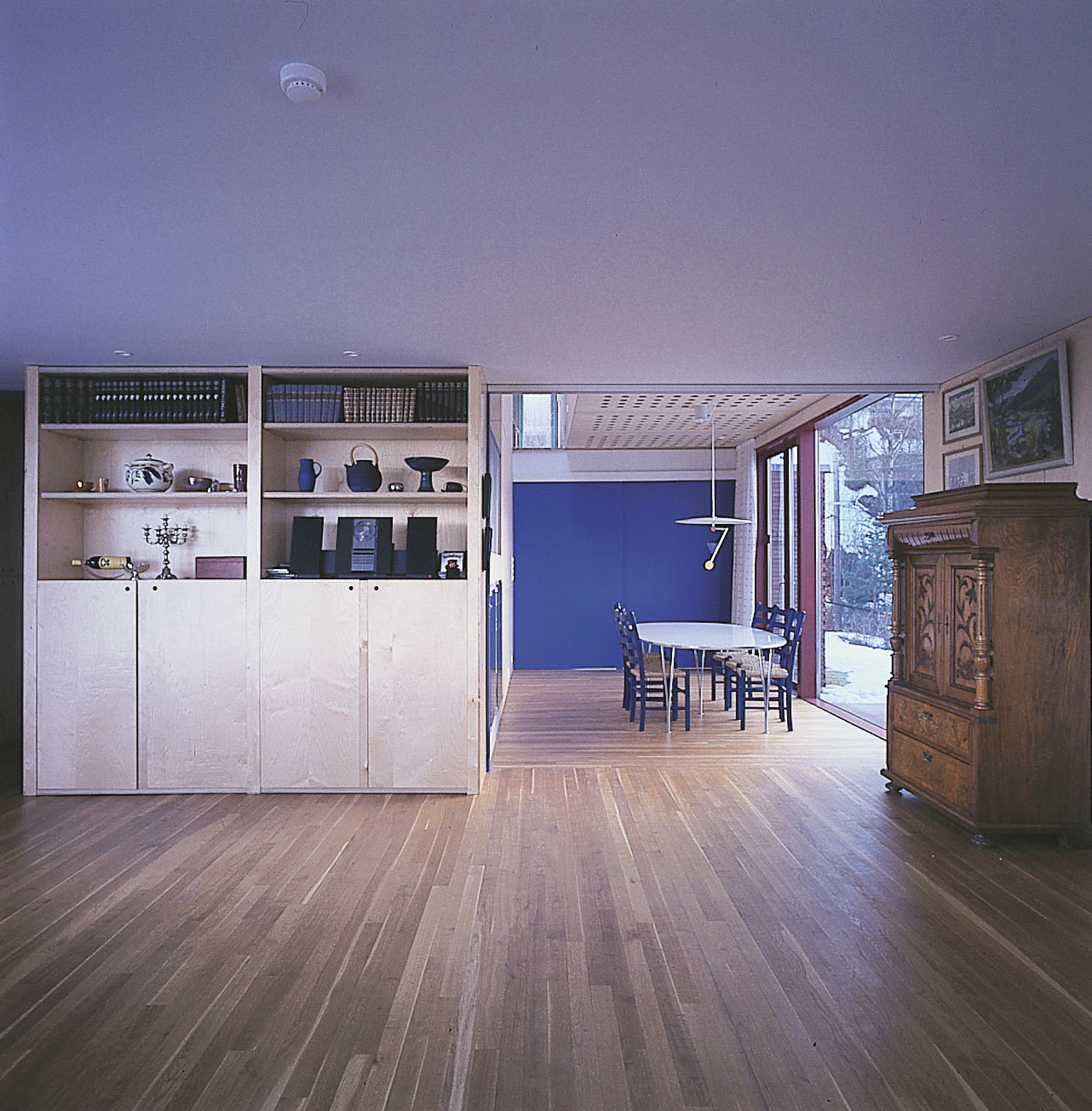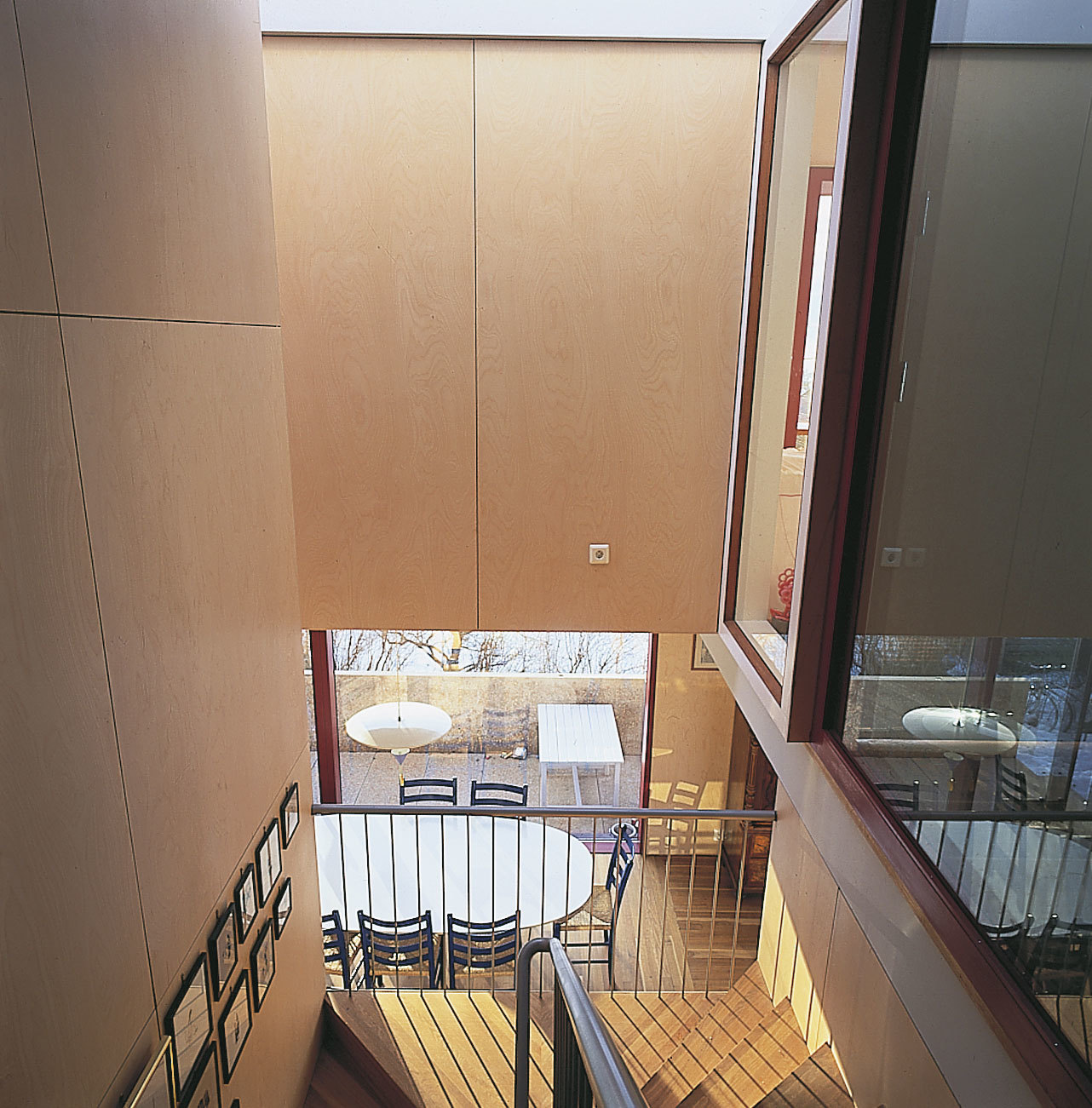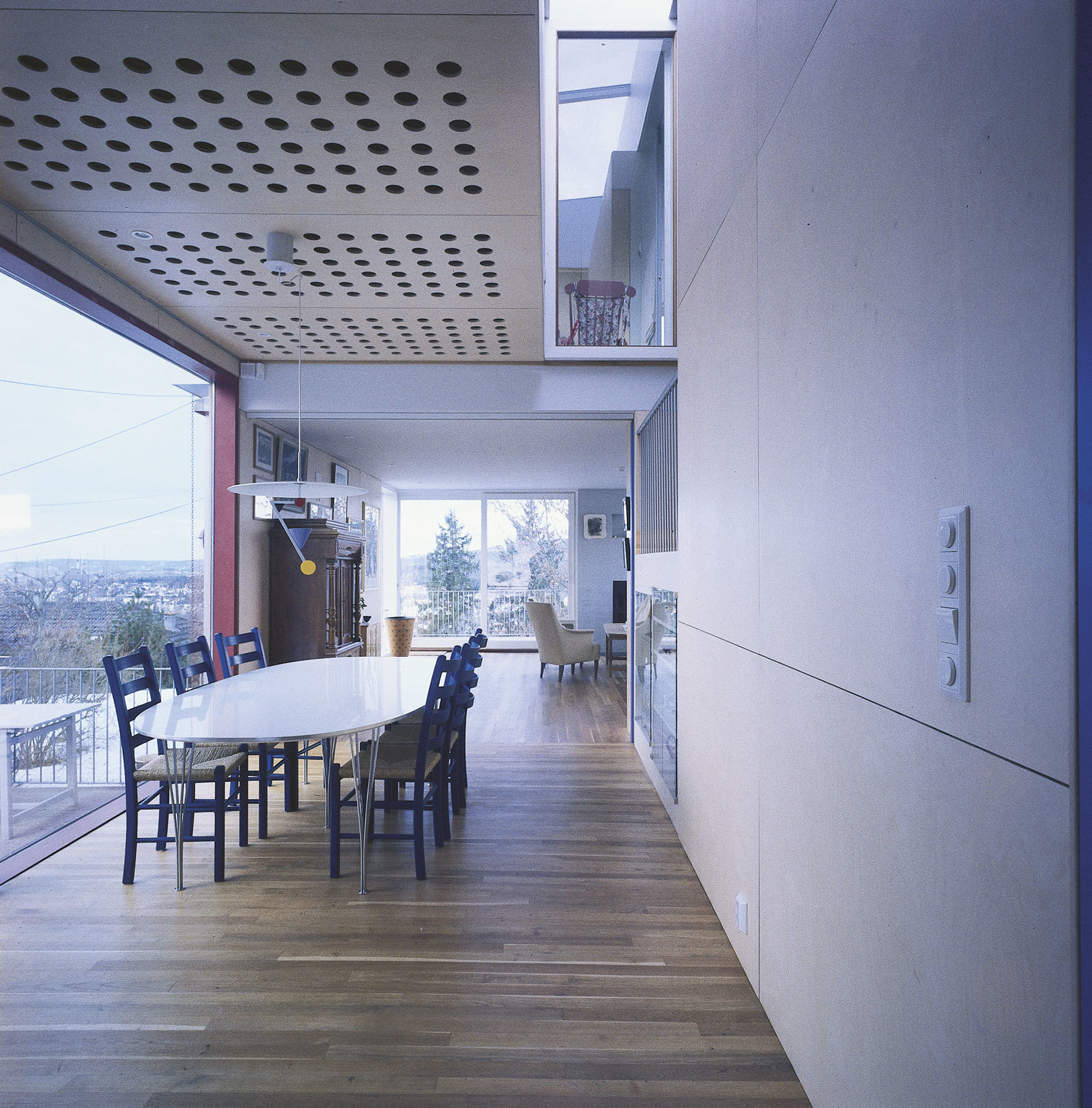 opening spaces. Using a system of sliding and hinged or pivoting doors, the house can be either a sequence of traditional closed spaces or an open continuous «landscape».