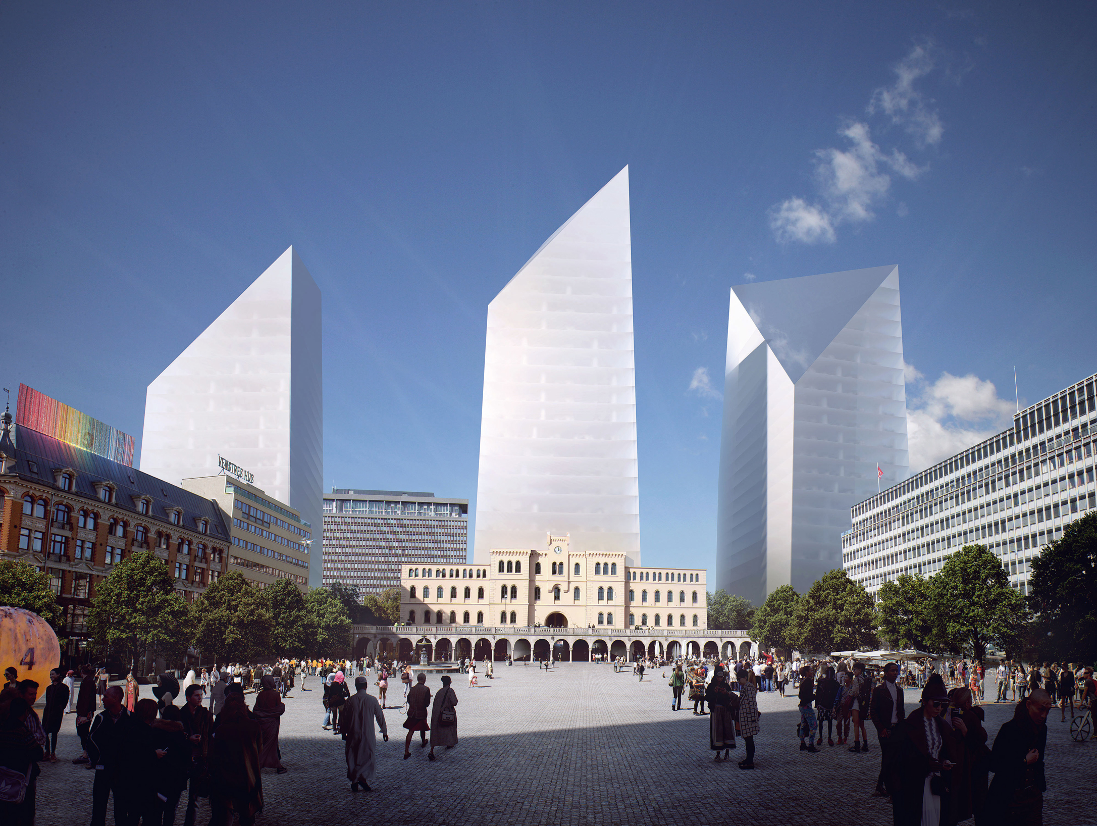 • Synlighet: Tre nye trekanttårn tydeliggjør regjeringens plassering i Oslo.