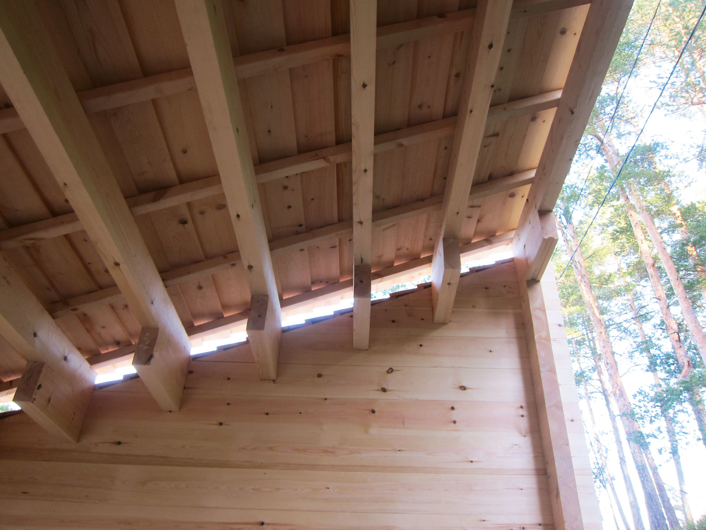 En selvpålagt utfordring var å bruke kun én stokkdimensjon til både lafteveggene og til gulv- og takkonstruksjonene.”