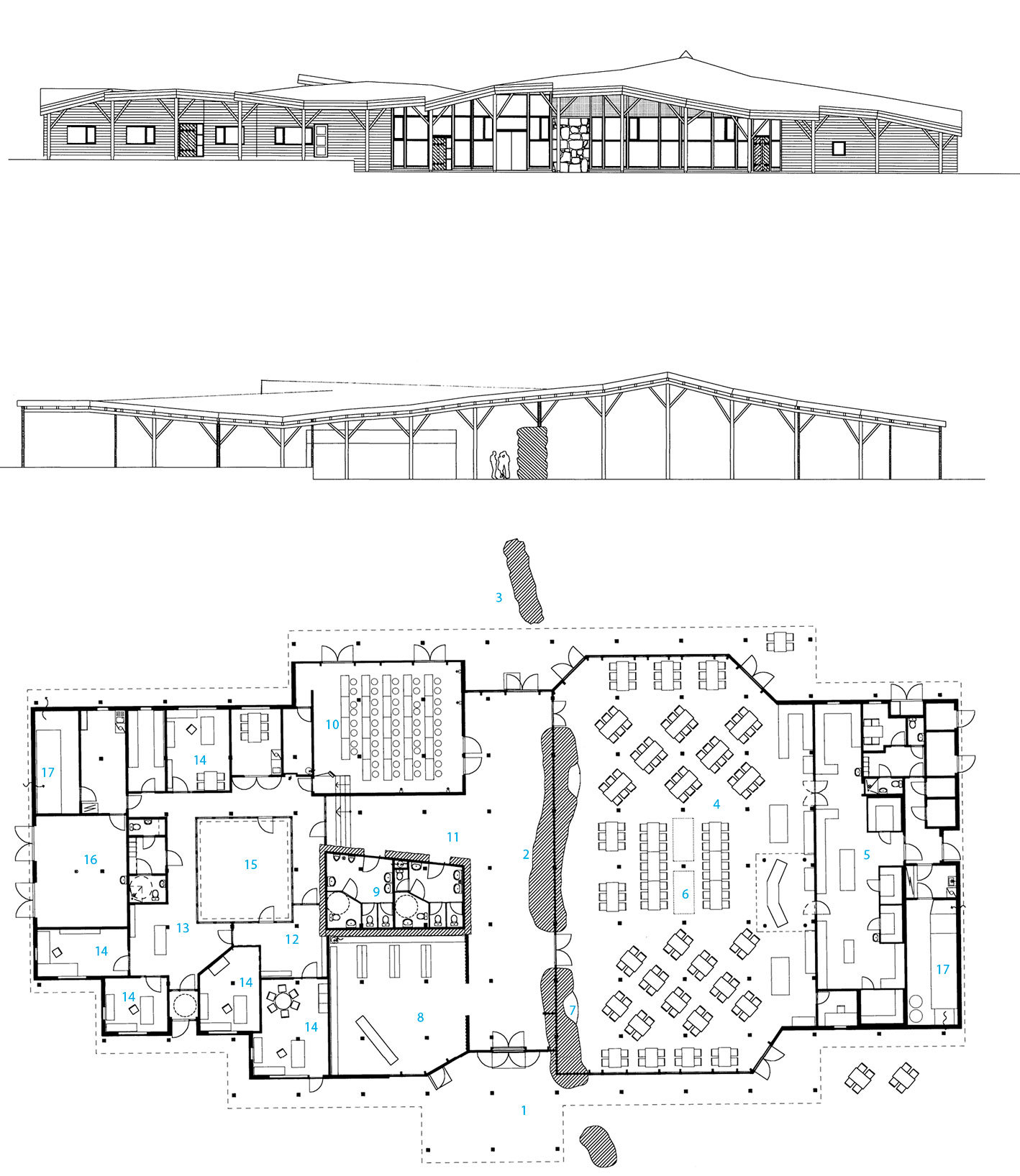 The building is part of the Hardangervidda visitor’s centre, and contains a café and restaurant for 200 people, souvenir shop, offices and meeting/teaching rooms for the local nature management authority.