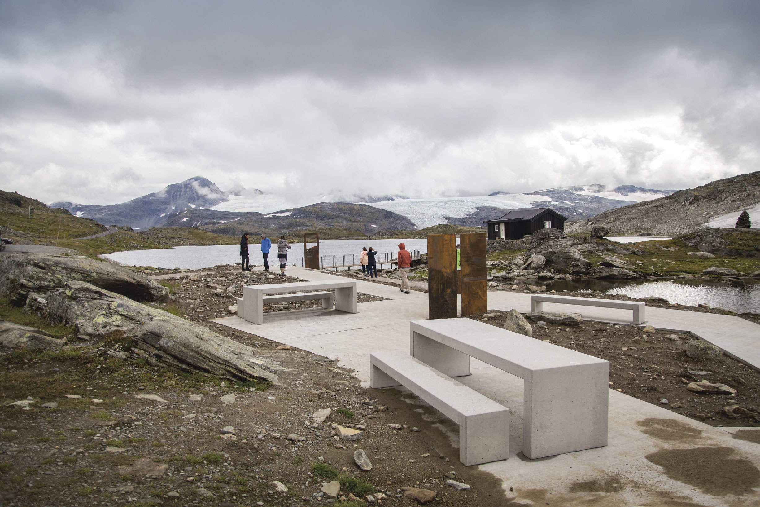 At Sognefjellet, at 1434 m, stands Sognefjellshytta, and the new entrance to Jotunheimen National Park. Dronninga landskap have designed the entrance, which is the first of four pilot projects that aim to make the national parks more accessible to a larger audience.