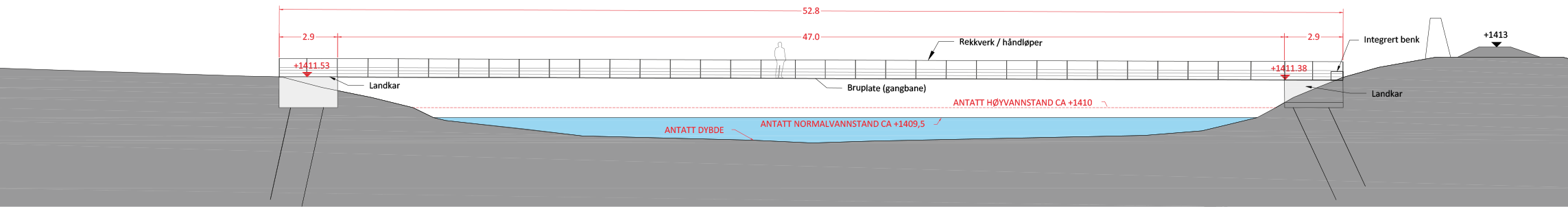 - Hovedentreprenør: Stryvo (bro og bordganger) og Ottadalen Anlegg (terrengutforming)
