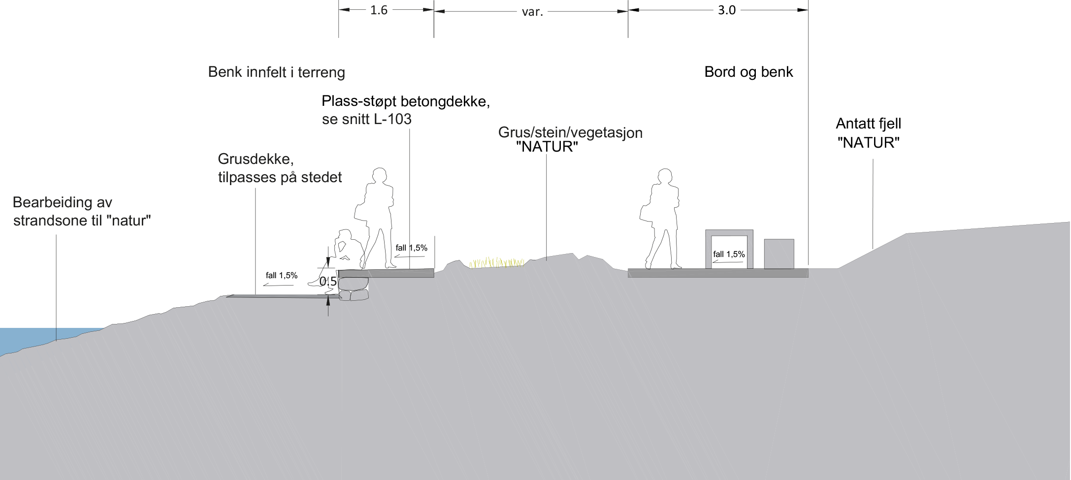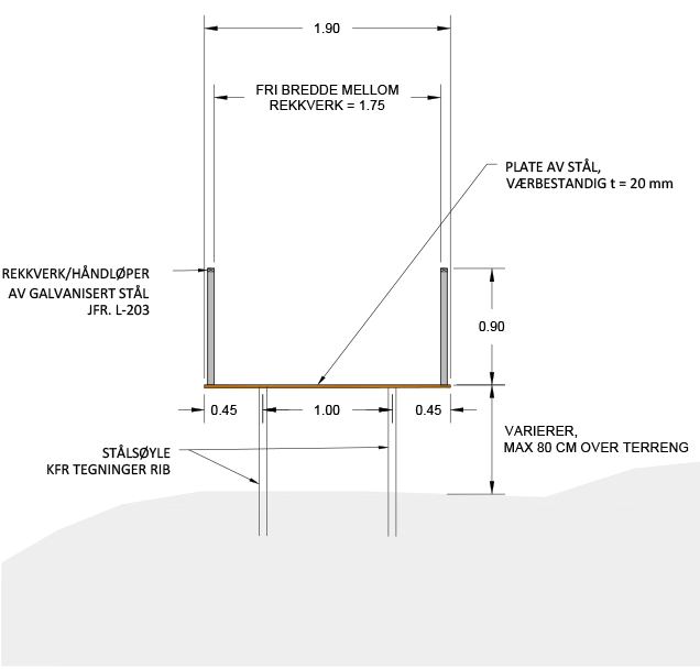 The project includes a universally designed 1.2–2 m wide walkway with a 1 km loop bypassing the Fantesteinsvatnet Lake. One segment of the path is a 52 m suspension bridge made of steel, 2 cm thick. The landscape architects have taken careful measures to leave the fragile nature mostly untouched.