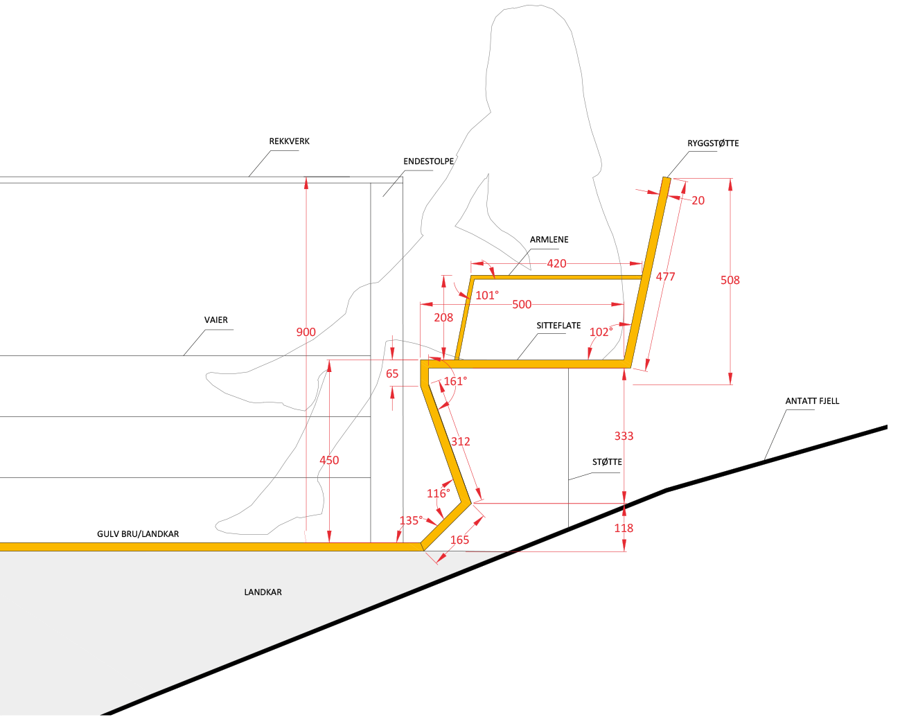 Det er likevel en forsiktig materialbruk som ikke prøver å stjele oppmerksomheten fra omgivelsene rundt. Materialbruken, sammen med konstruksjonenes slanke dimensjoner, gjør heller at oppmerksomheten til omgivelsene forsterkes. For eksempel rammes Fanaråken inn mellom stålbroas gulv og rekkverk. Dette er flott!