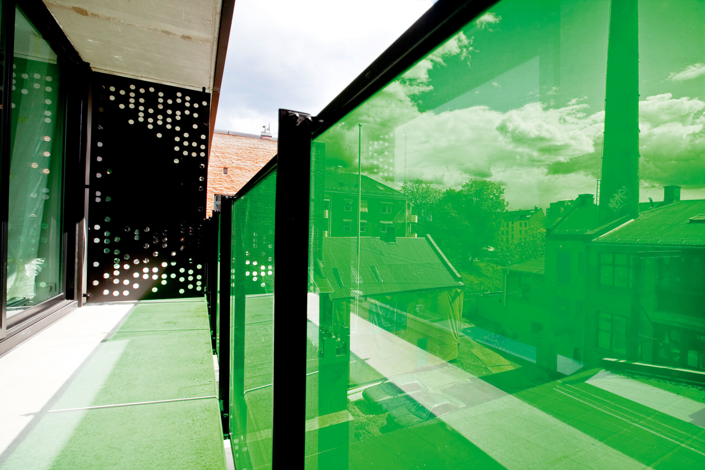 Alle leiligheter har sydvendt balkong på 6 kvm eller mer, og de øverste har i tillegg sjenerøse private takterrasser med utsikt utover store deler av Oslo sentrum.