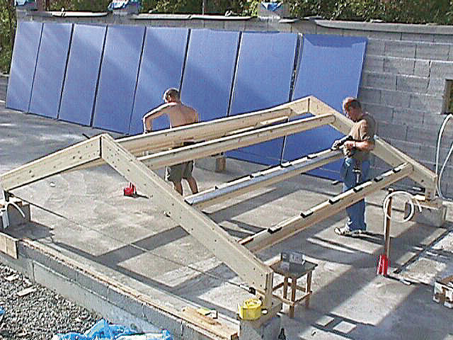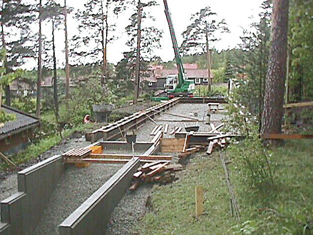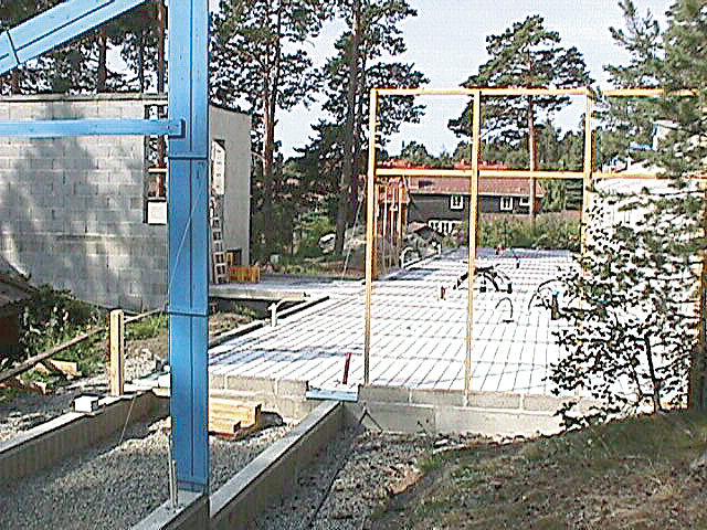 Byggingen startet i desember 1999, innflytting skjedde i mai 2001. Jeg var selv ansvarlig samordner og arbeidende byggeleder. Alle håndverkere var kvalifiserte enmannsbedrifter som arbeidet etter avtalt timesats. Målsettingen med denne organiseringsmodellen var at resultatet skulle holde høy kvalitet, og at prosessen skulle være positiv og kreativ, med mulighet for justeringer og endring av utformingen underveis.