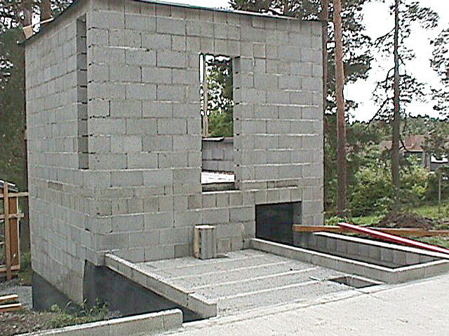 Isoblokk ble valgt som hovedmateriale. Dette ga en modul på 25 cm i lengden, 26,5 cm i høyden og en akseavstand for hovedkonstruksjonen på 4,0 m. Ingen blokker ble hugget i stykker, og gulvfliser og glassbyggestein finnes i modulmål 25 x 25 cm.