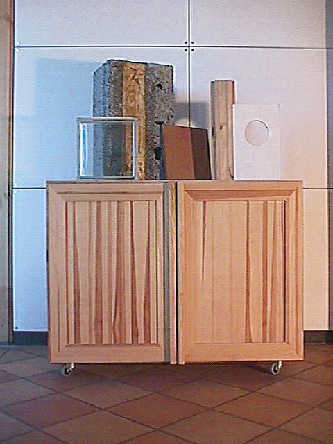 Uavhengighet mellom konstruksjonene og de tekniske anlegg er et brukbart prinsipp både i stor og liten skala. Hulrommet mellom dobbeltsøylene er avdekket med 12 mm hvitmalt finér. Finéren skjuler et åpent el-anlegg som betjenes av programmerbare industribrytere.