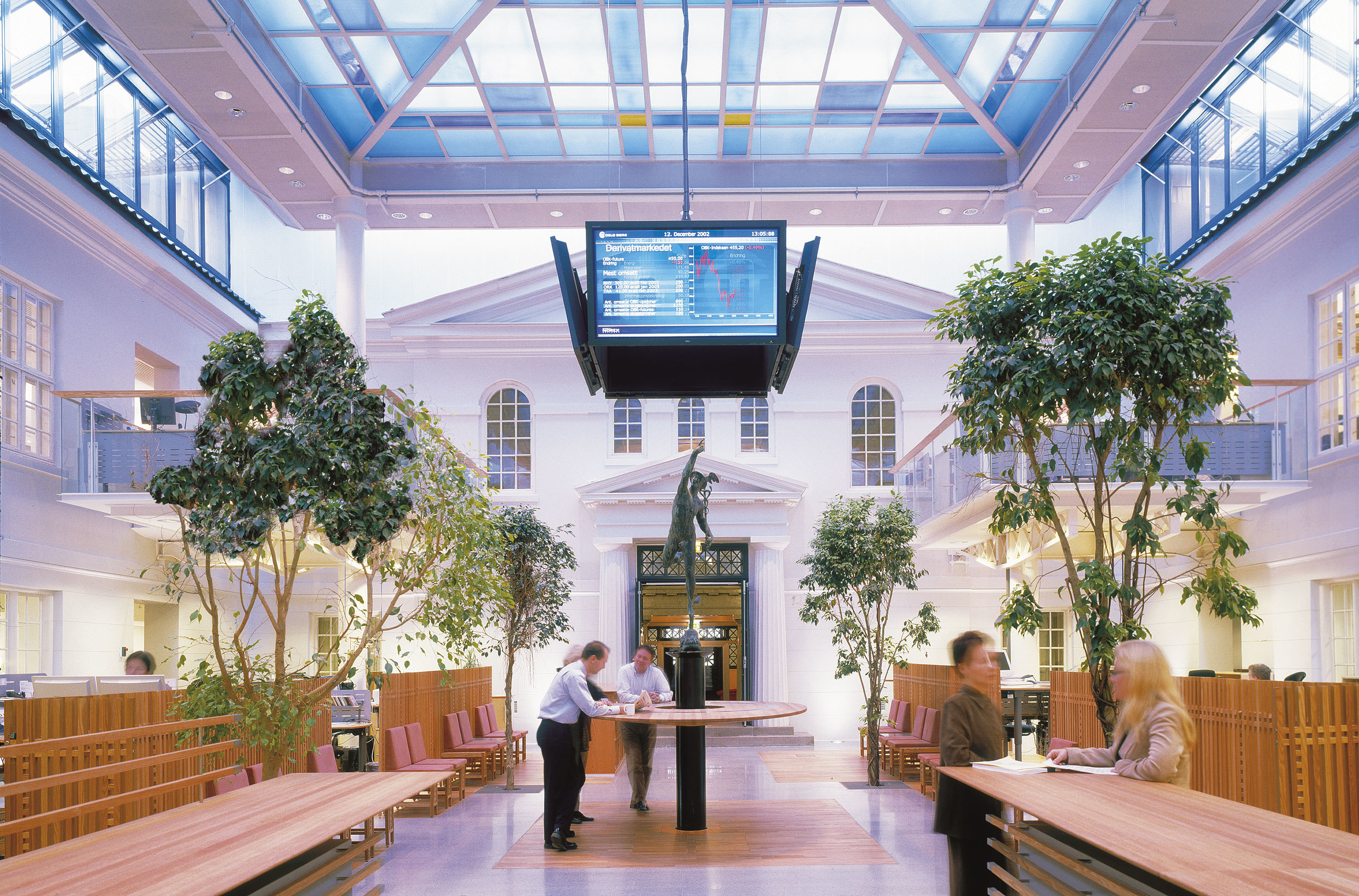 The building for Oslo stock exchange, dated 1828 and designed by Chr. H. Grosch, was not equipped to serve the trade expansion which took place in the 1990’s, when the number of employees at the exchange was more than doubled. The building is a civic monument and a protected structure, which needed an effective and attractive interior to continue to serve its purpose. The refurbishment had to develop the clarity and simplicity of the original design, and strip out the results of several earlier alterations.
