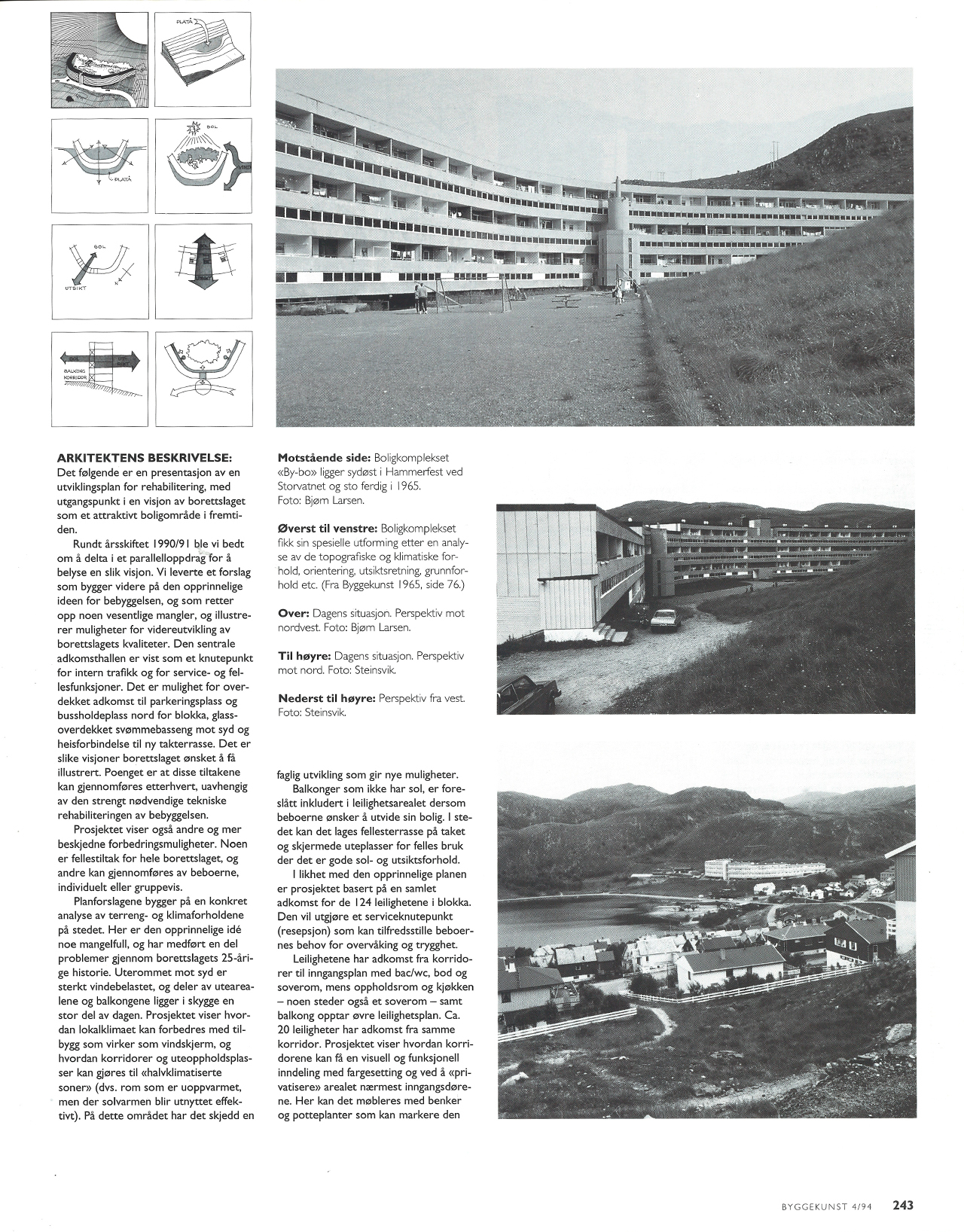 Det følgende er en presentasjon av en utviklingsplan for rehabilitering, med utgangspunkt i en visjon av borettslaget som et attraktivt boligområde i fremtiden. Rundt årsskiftet 1990/91 ble vi bedt om å delta i et parallelloppdrag for å belyse en slik visjon. Vi leverte et forslag som bygger videre på den opprinnelige ideen for bebyggelsen, og som retter opp noen vesentlige mangler, og illustrerer muligheter for videreutvikling av borettslagets kvaliteter.