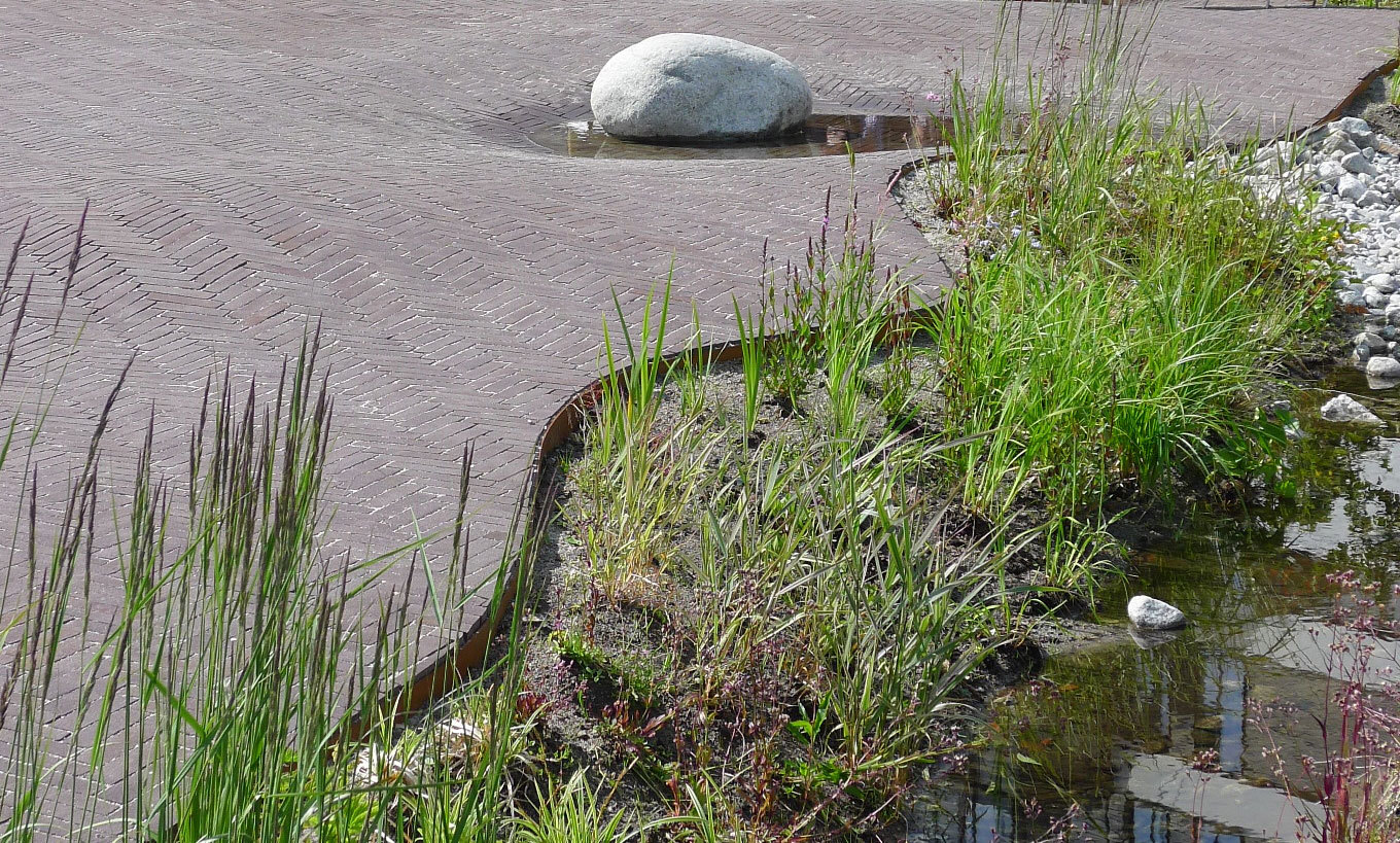 - Andre tiltak: Permeable overflater som teglbelegg og beplantningsbed er brukt for å håndtere store regnmengder. Beplantningen skal styrke det biologiske mangfoldet i området.
