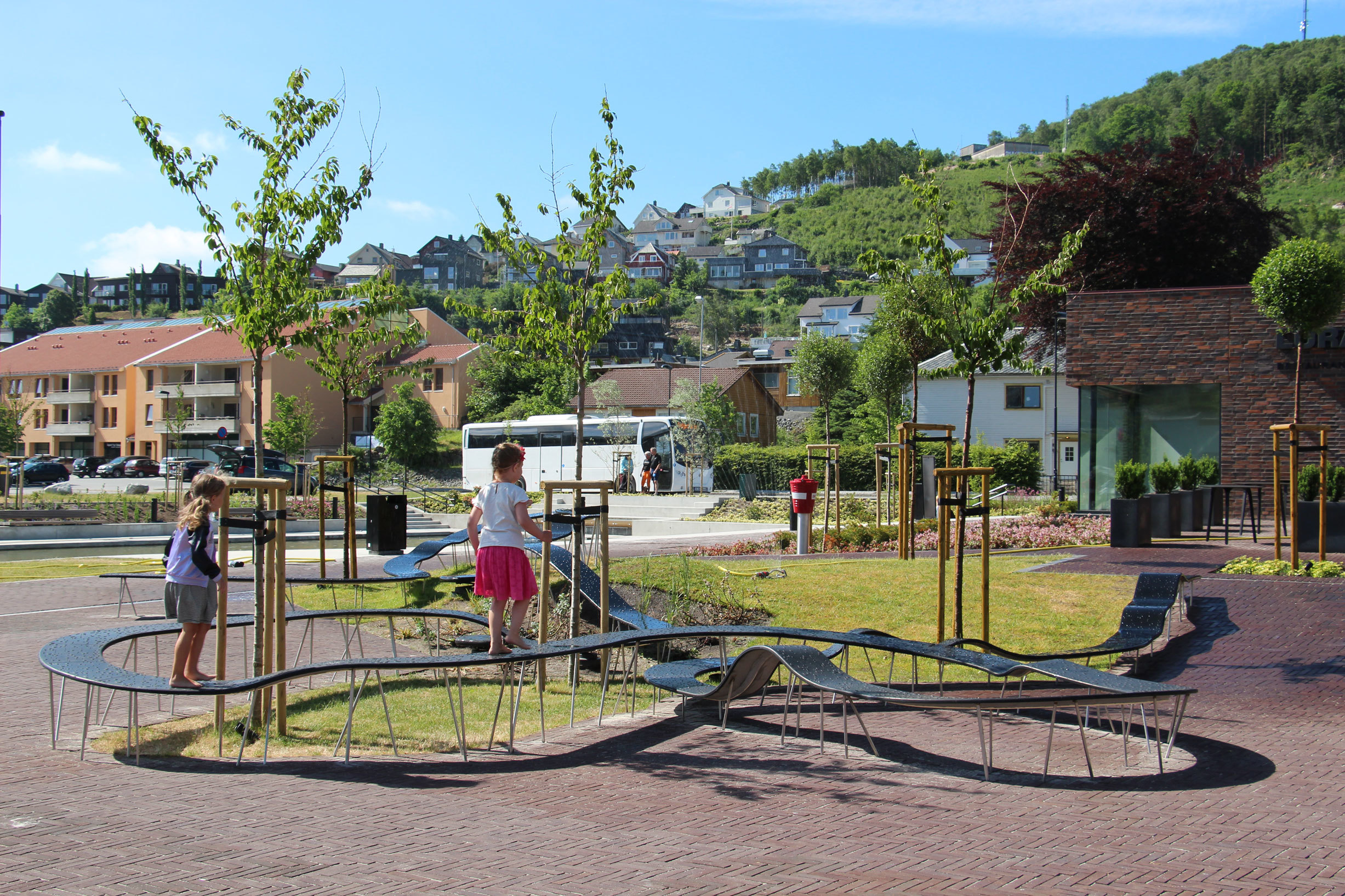 Da Ålgård sentrum skulle fornyes, fikk Anne Truelsen Schultz i ATSITE og Imke Wojanowski fra Brandsberg-Dahls arkitekter mulighet til å boltre seg med å lage en aktivitets-park på en del av torget.