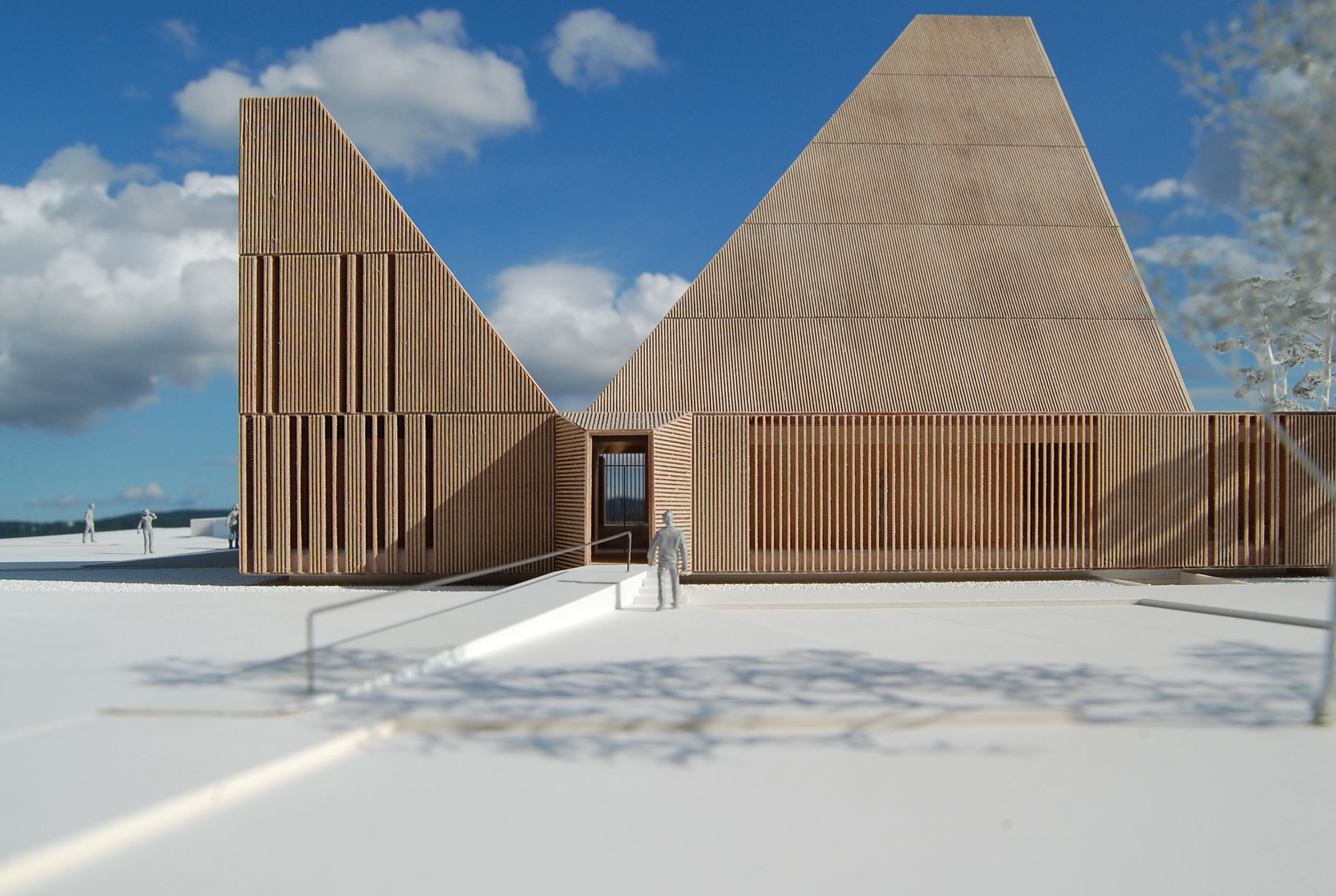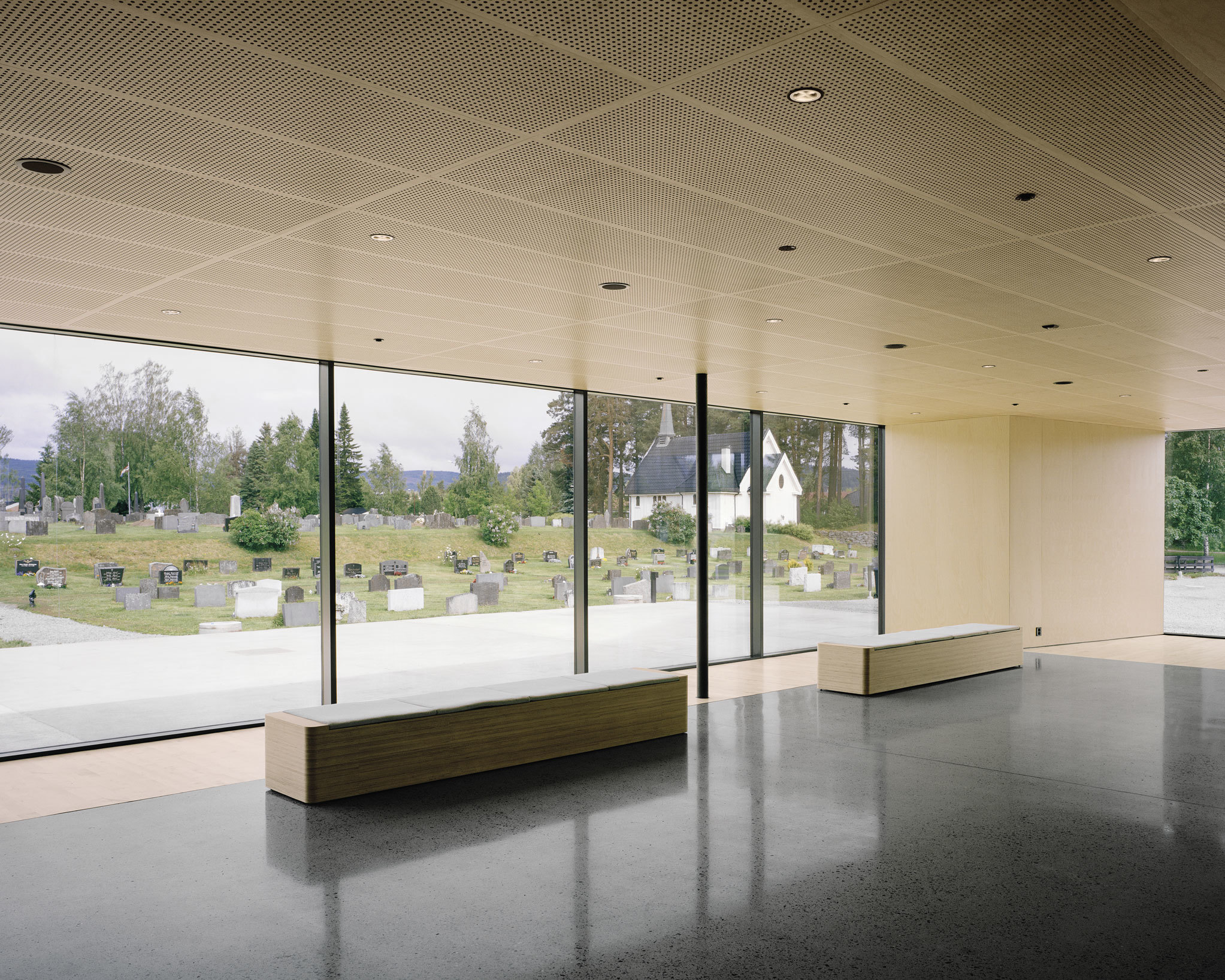 Våler is a small village on the Glomma River. The churchyard is one of the few planned areas of the town centre, and when the old 19th Century church burned down in 2009, people felt the loss very keenly. The all but impossible task of the new church was to recreate the lost space as a frame for significant events in local people’s lives.