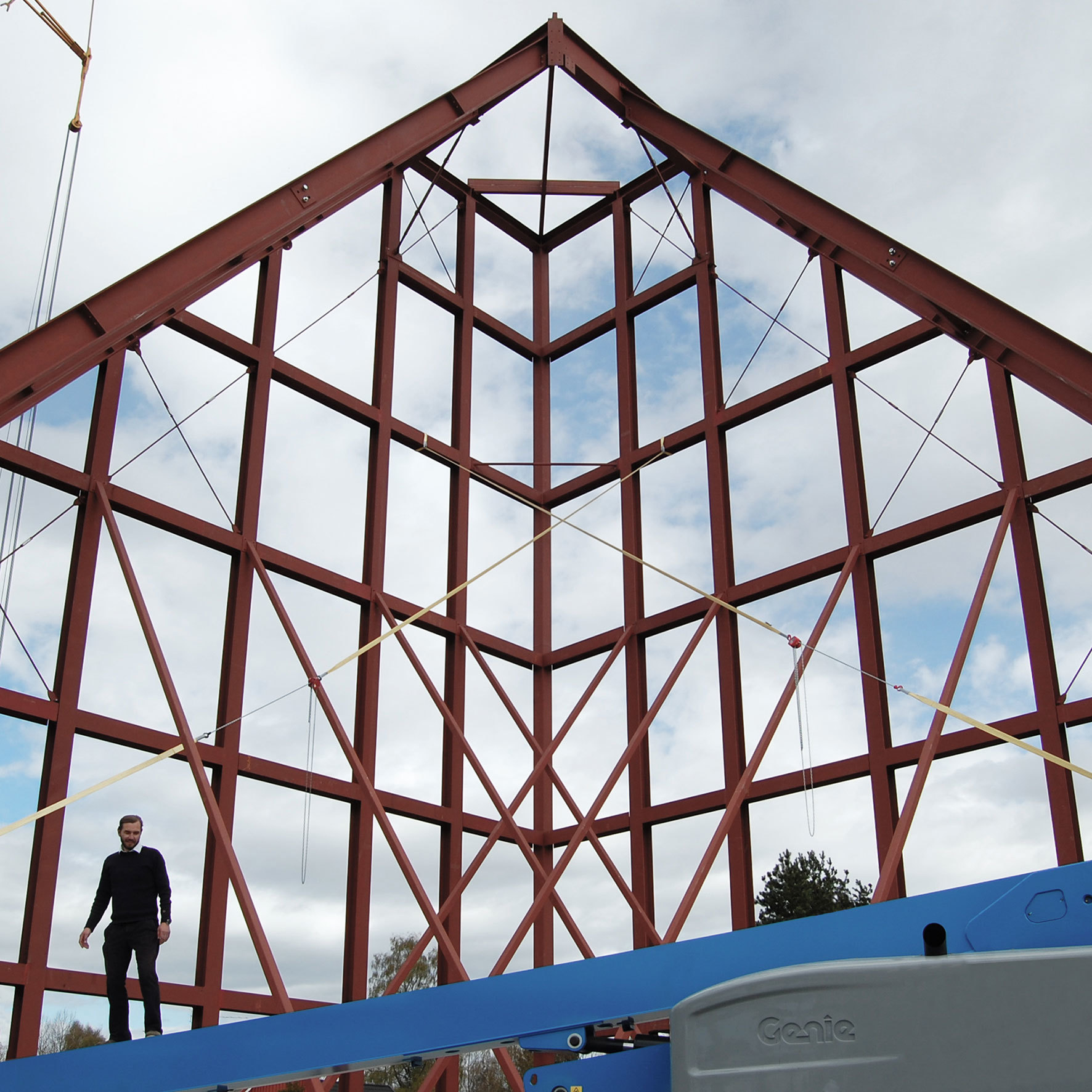Konkurranseutkastet la til grunn en bærende stålkonstruksjon. Rent teknisk medførte den strengt strukturerte stålkonstruksjonen at vi kunne lage svært tynne isolerte vegg- og takkonstruksjoner, selv med 24 meter fri høyde og store spenn. Spesielt spennende er kombinasjonen av isolerte varme ståltak og trekledning. Ved å bruke kompakte uorganiske tak kunne vi unngå lufting, noe som åpnet for at de utvendige trehudene kunne detaljeres med minimale overganger uten luftelyrer. Malmfurustokkene er montert på et eget tilfarersystem utenpå membransjikt og klimavegger. Hver stokk er luftet og satt opp med en tilfeldig valgt spalteavstand på enten 10,15 eller 20 mm til nabostokken. Primærkonstruksjonen i bygget er prosjektert med en levetid på flere hundre år. Malmfurukledningene skal ikke ha vedlikehold eller maling, men gradvis gråne. I det tørre innlandsklimaet har kledningen en lang forventet levetid, men det er lagt til grunn at den skal skiftes om lag hvert femtiende år. På denne måten vil kirken ”gjenoppstå” for hver kommende generasjon.