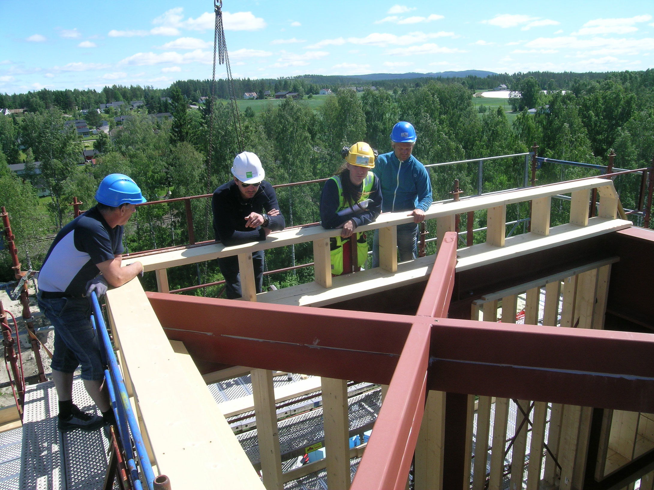 - Materialbruk: Det er benyttet tre i overflater innvendig og utvendig. Stål i hovedbærekonstruksjon og betong i hoveddekke og i grunnen.