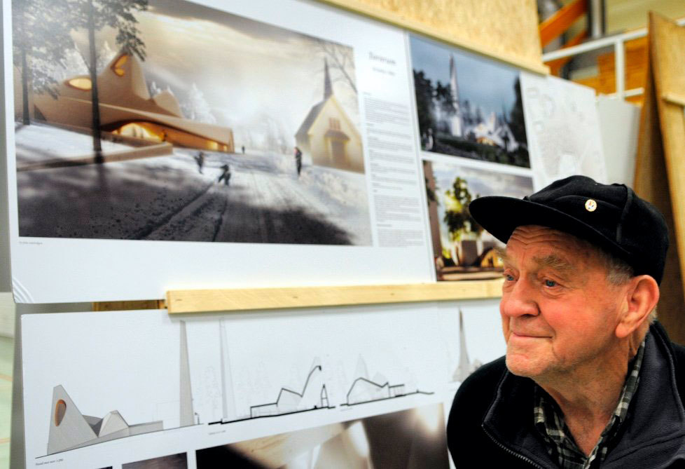 “Kirkebygget er kledd i rette, høvlede malmfurustokker, som en referanse til de store Vålerskogene.”