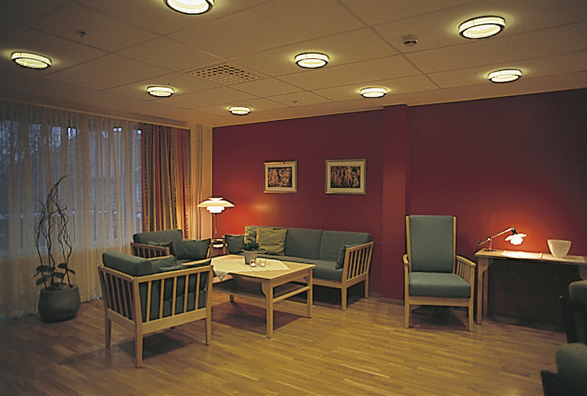 Vinderen residential home for the elderly is located on a suburban site. The aim was to create an optimum balance between the requirements of the elderly residents, the staff and the visitors, in architecture, landscape design and interiors, retaining a human scale.
