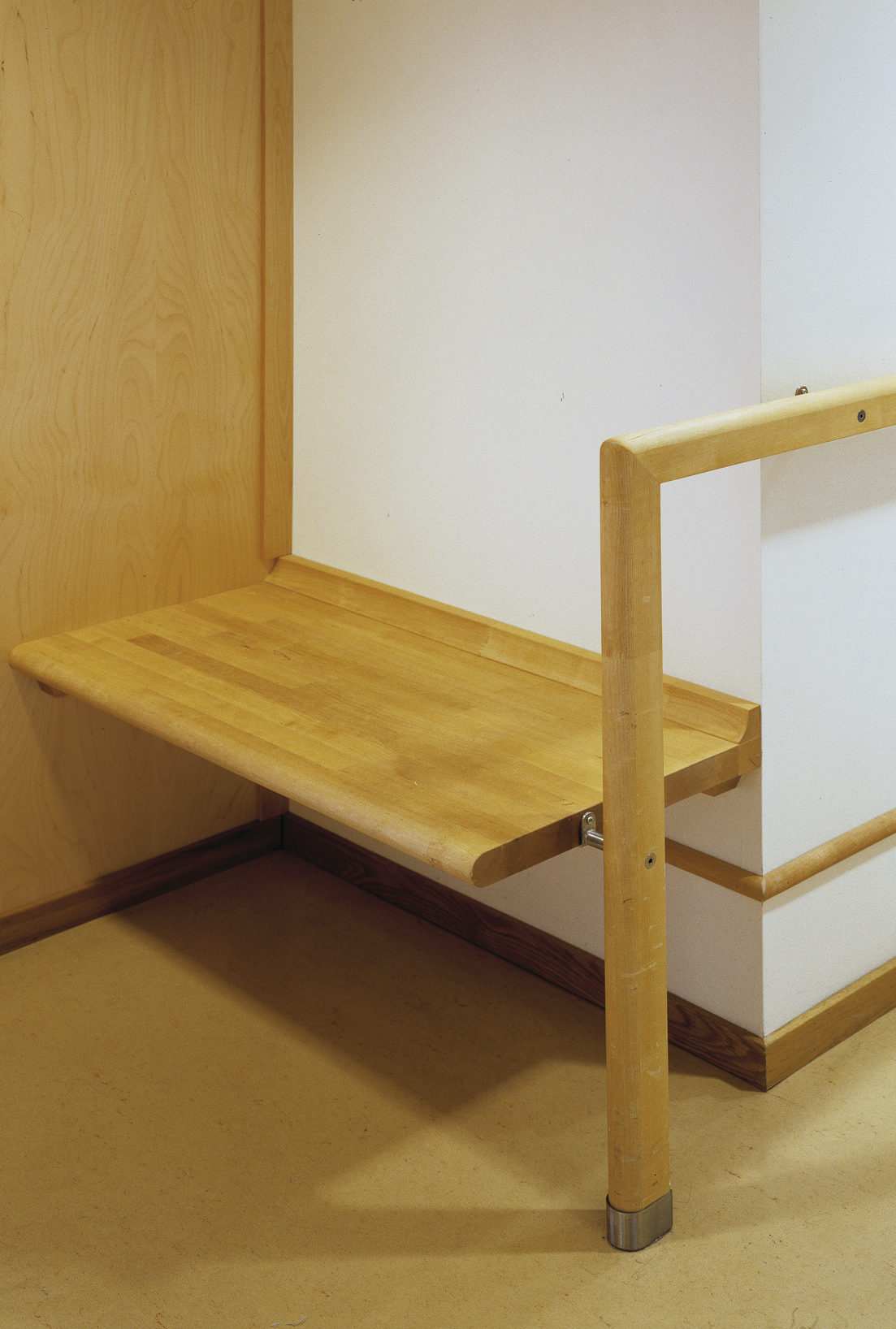 The interiors are aimed not only at the old people of today, but also the future inhabitants. Light birch wood is the main material; strong colours are used for orientation. Individual rooms provide a neutral backdrop for the resident’s own furniture and possessions.