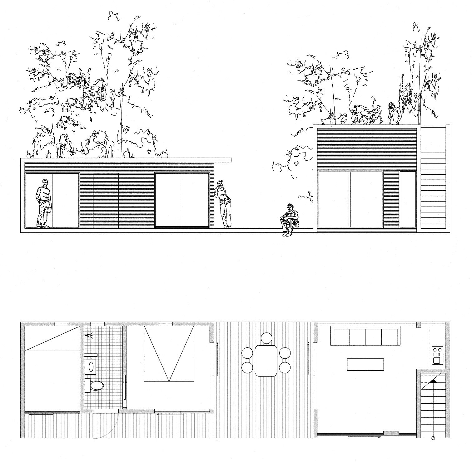 Prosjektet er et ombyggings- og gjenbruksprosjekt. Opprinnelig bestod bygningsmassen av to mindre tømmerkasser, begge på ca. 15 kvm, koblet sammen med en forbindelse i bindingsverk. Den eldste delen er fra slutten av 1800-tallet, og den nyere tømmerkassen er en kopi av denne, laftet av forrige eier som et selvbyggerprosjekt.