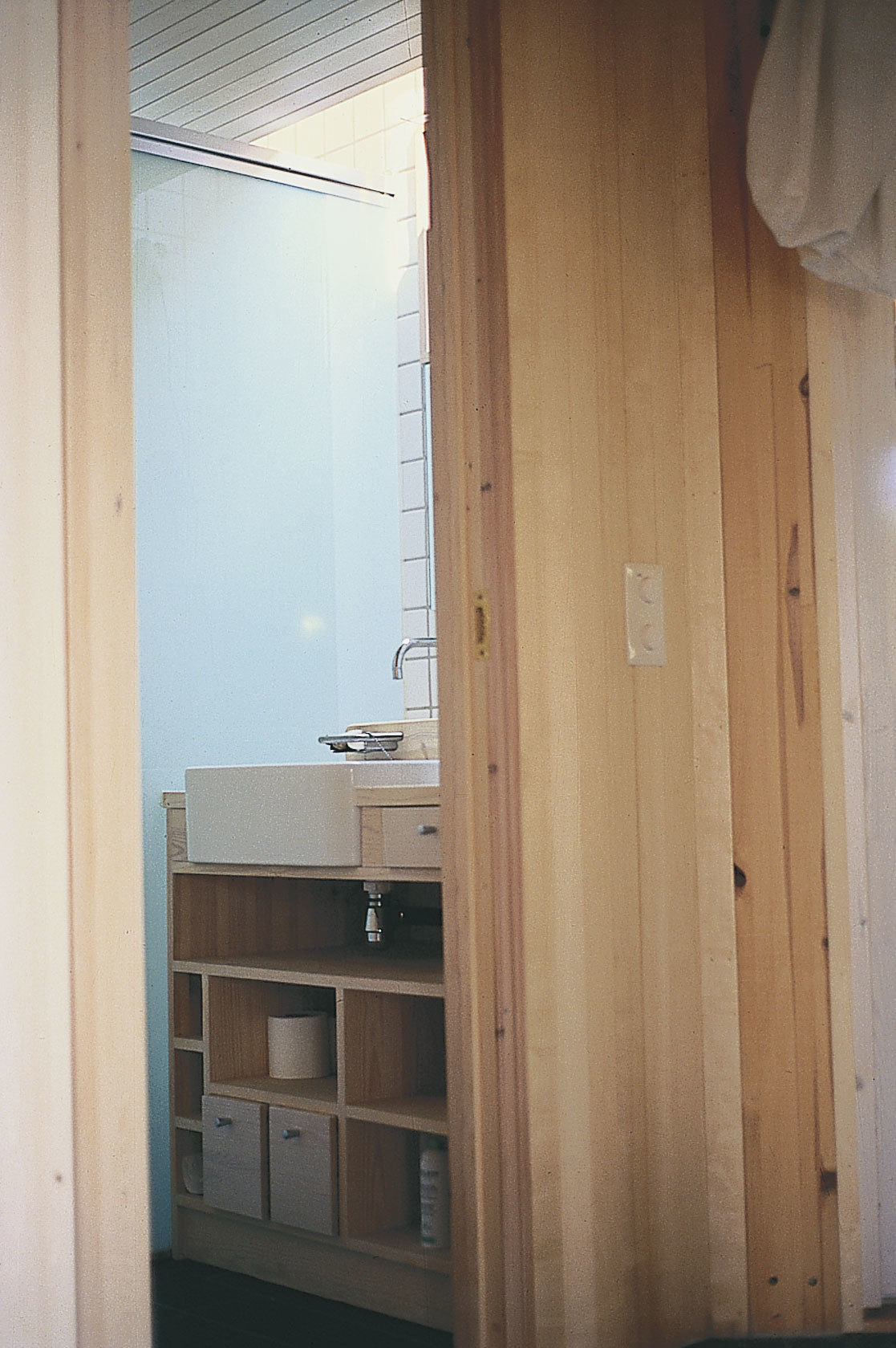 All materials are from local saw mills, linseed oiled and insulated with linseed insulation. The building stands on pillars, avoiding any changes in the local terrain or any cutting of tree roots.