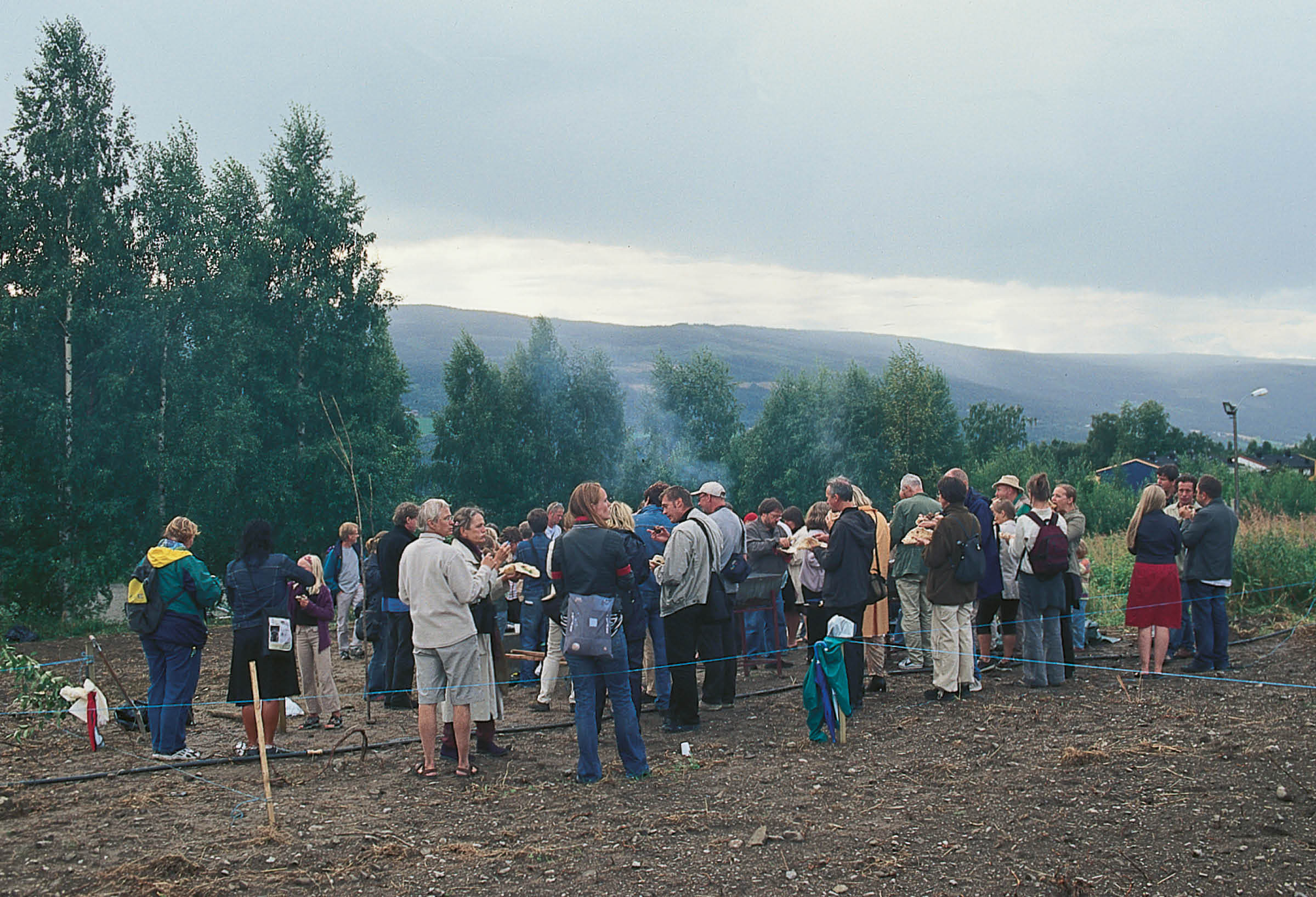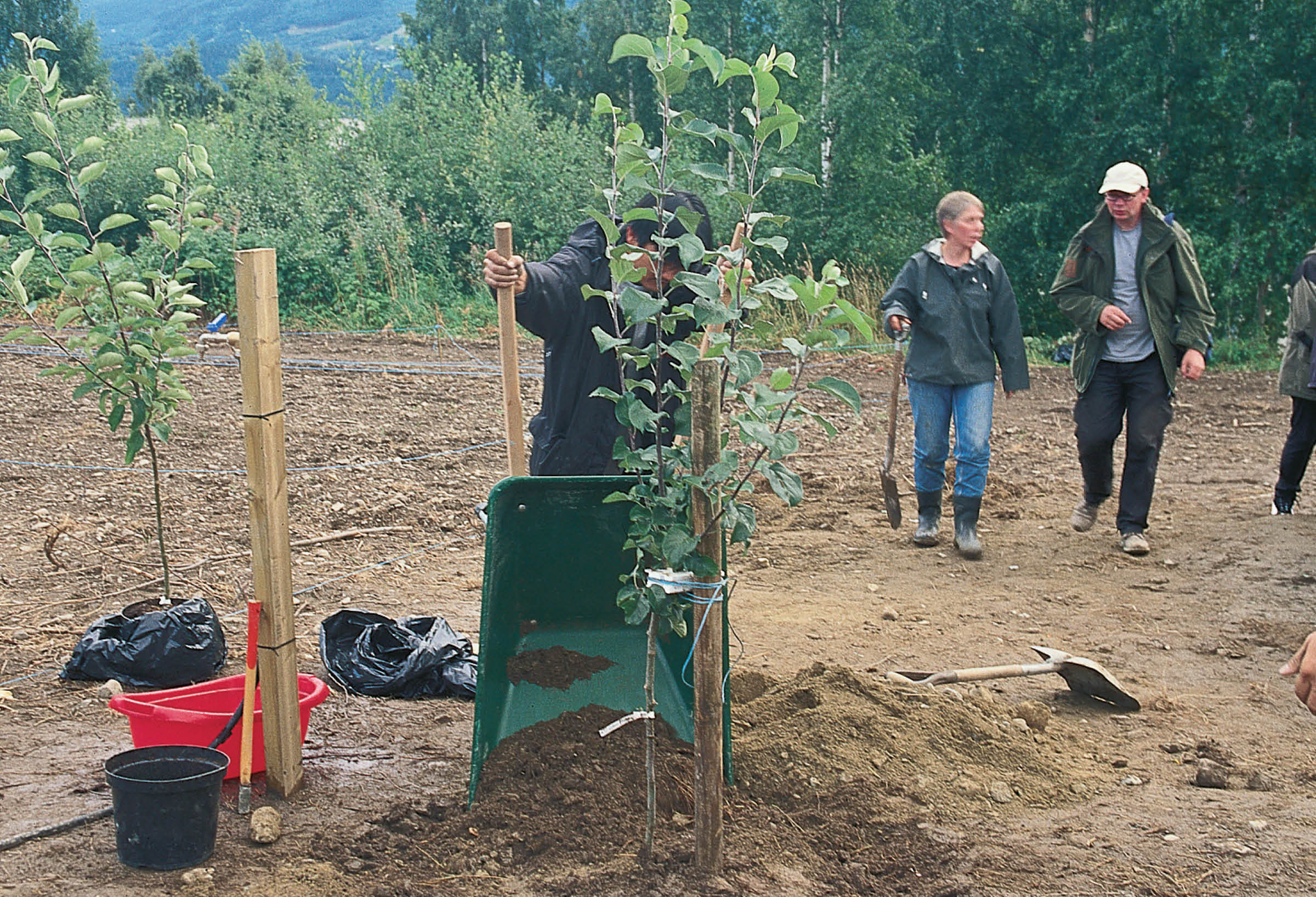 Publikum graver og planter to epletrær: Rød Haugmann og Transparente Blanche, som begge er hardføre og tilpasset Lillehammers klima. En forhenværende anleggsgartner instruerer.