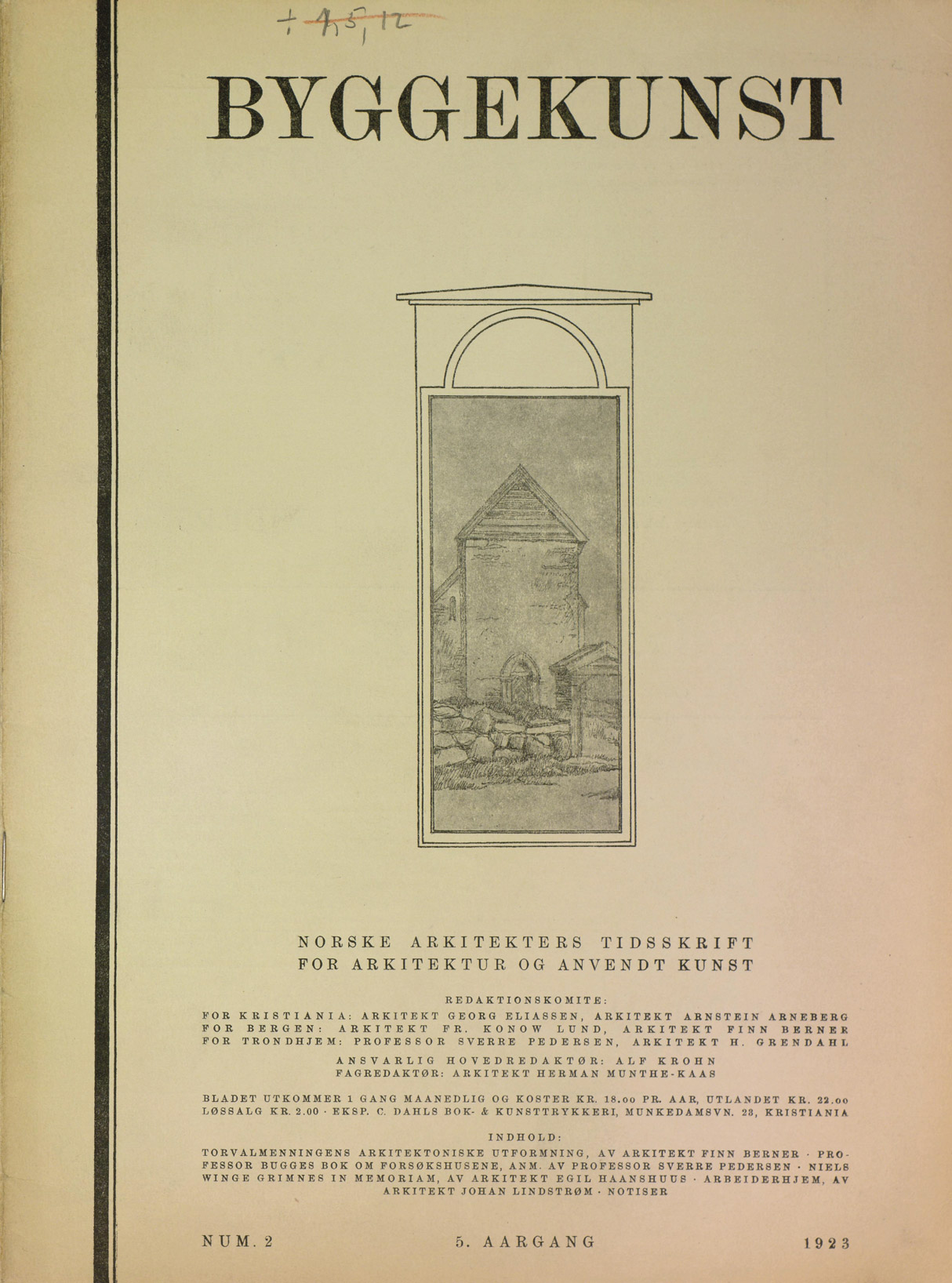Redaktør for nr. 2-1923 var Alf Krohn. Fagredaktør: Herman Munthe-Kaas. I redaksjonskomiteen satt Georg Eliassen, Arnstein Arneberg, Fr. Konow Lund, Finn Berner, Sverre Pedersen, H. Grendahl.