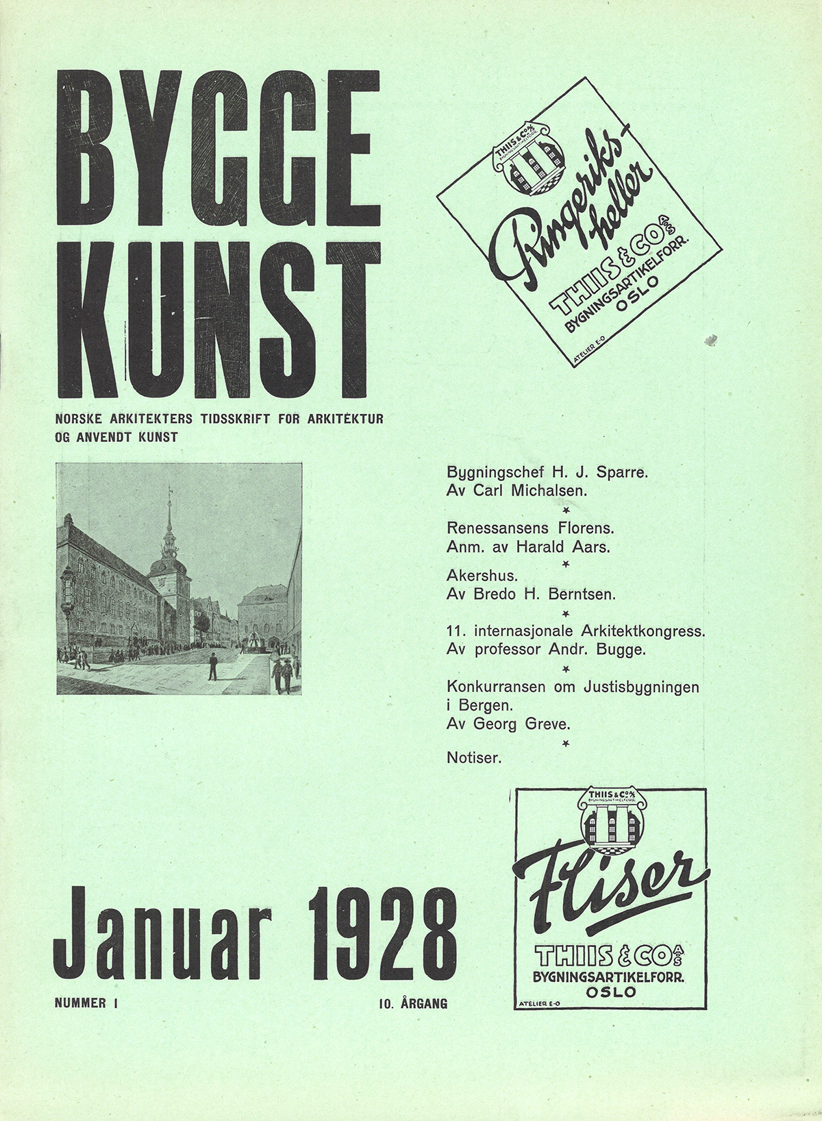 Redaktør for nr. 1-1928 var Alf Krohn. Fagredaktør: Sverre Poulsen. Redaksjonskomité: Ole Øvergaard, Georg Greve, Stadsarkitekt Hassel (Bergen), Johan Lindstrøm, C. Hjelte, C. Moe.