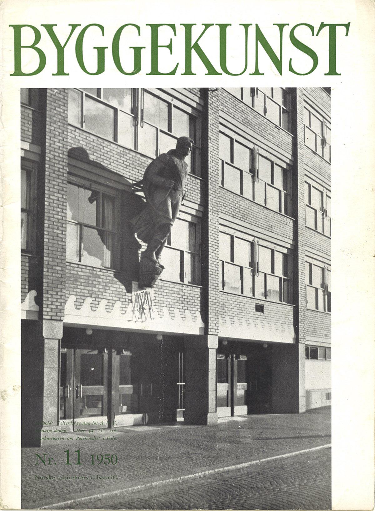Redaktører for nr. 11-1950 var Eyvind Alnæs. I redaksjonen satt Olav Platou, Harald Klem, Thomas Tostrup og Fredrik Winsnes. Forsiden: A.S Akers mek. verksted velferdsbygning, Munkedamsveien 45, Oslo av Gudolf Blakstad og Herman Munthe-Kaas.