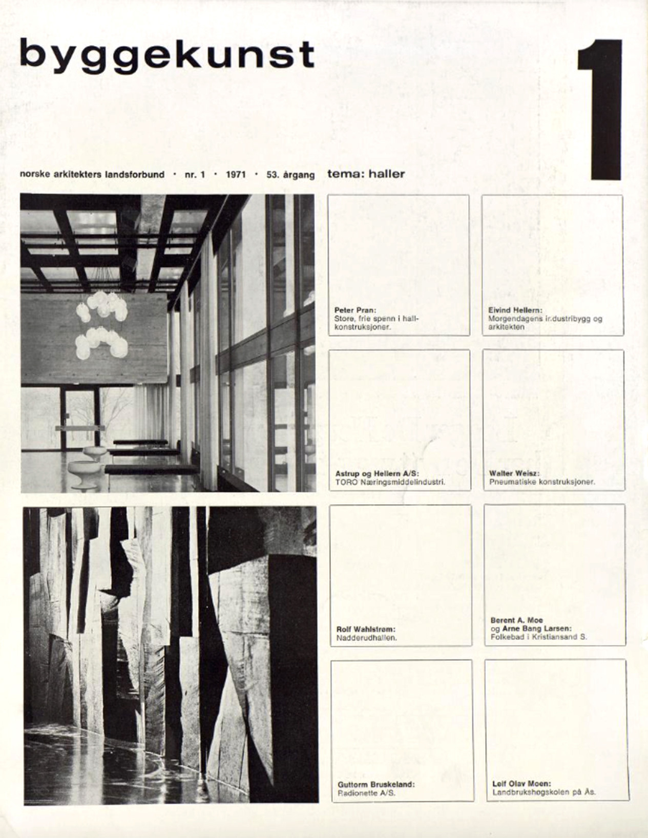 Redaktør for Byggekunst nr.1-1971 var Christian Nordberg-Schulz. Red.sek: Gudrun Finckenhagen. Redaksjon: Tore Brantenberg, Louis Kloster, Jostein Molden, Frode Sandvik, Truls Thorenfeldt.