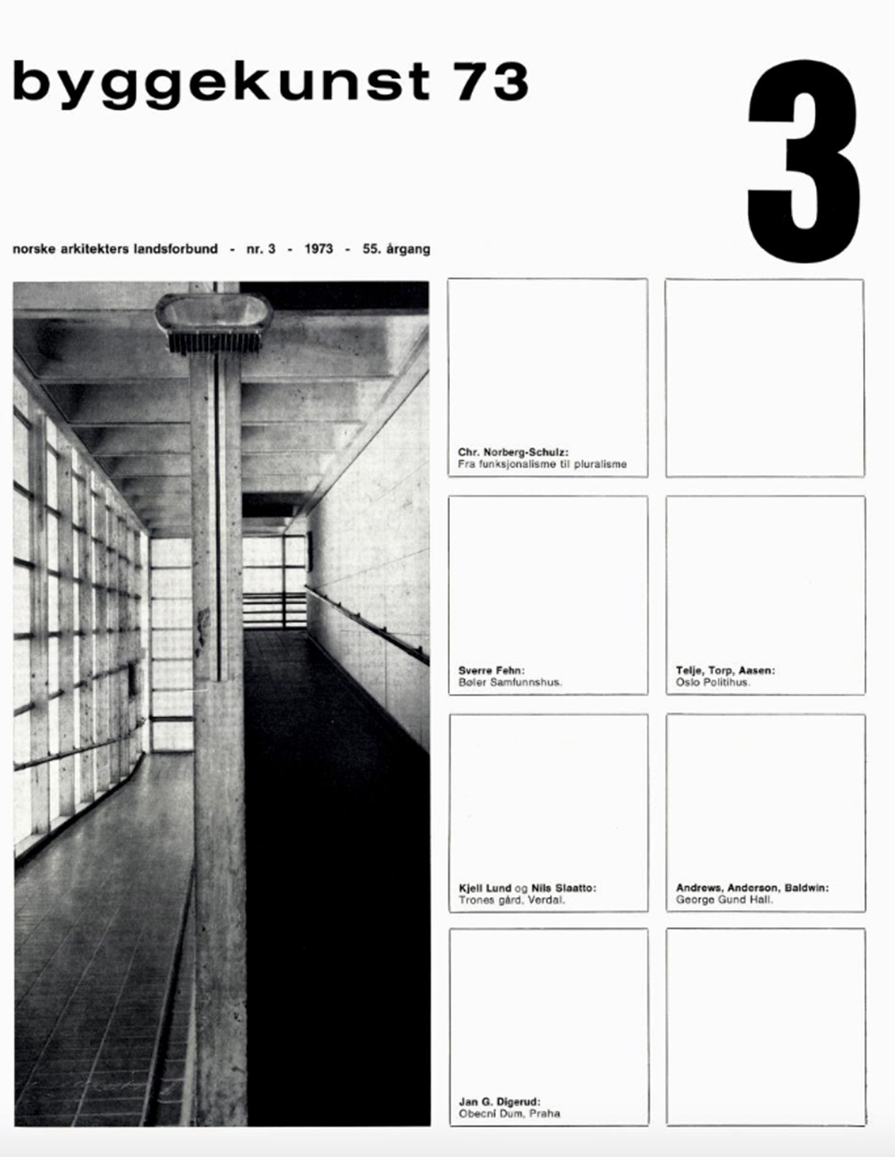 Redaktør for Byggekunst nr. 3-1973 var Christian Nordberg-Schulz. Red.sek: Gudrun Finckenhagen. Redaksjon: Ole Arnt Arntzen, Frode Sandvik, Røyne Kyllingstad, Sigrun Kaul, Terje Thorstensen.