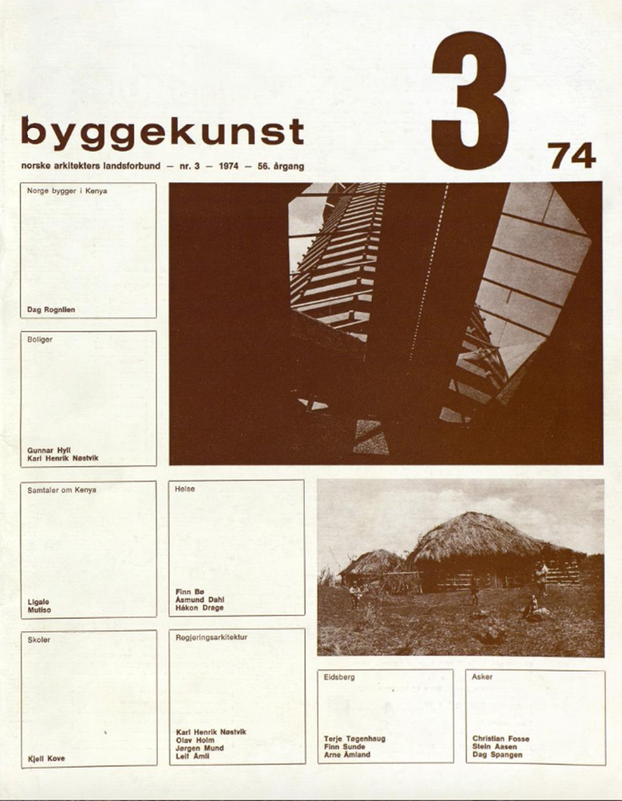 Redaktør for Byggekunst nr. 3-1974 var Dag Rognlien. Red.sek: Gudrun Finckenhagen. Redaksjon: Ole Arnt Arntzen, Frode Sandvik, Røyne Kyllingstad, Sigrun Kaul, Terje Thorstensen.