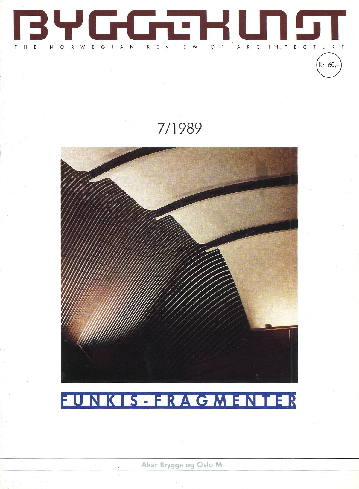 Redaktør for nr. 7-1989 var Ulf Grønvold. Red.sek: Åse Westberg. Landskapsmedarbeider: Ola Bettum. Interiørmedarbeider: Solveig Lønne Christiansen. Layout: Terje Solvang, Ulf Grønvold. Forlagsstyret bestod av Rolf Skjelstad. Viggo Ditlevsen, Bente Kleven, Solveig Løken, Magnus H. Westerberg, Ellef Ruud (NLA), Jan Inge Poppe (NIL). Forsiden: Utsnitt av Klingenberg kino i Oslo tegnet av Blakstad og Munthe-Kaas. Foto: ARFO.