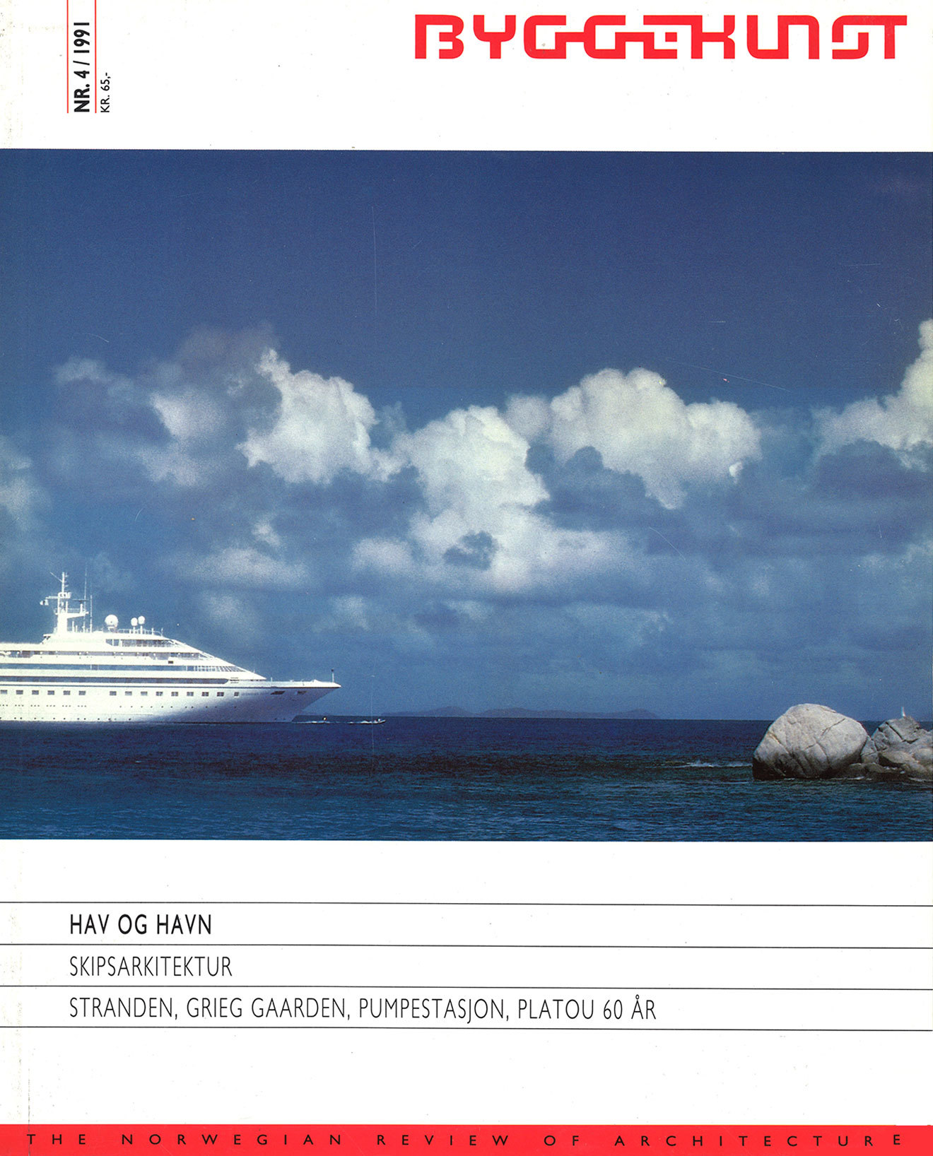 Havnen er det fortettede møte mellom hav og land. Bryggekanten er grenselinjen mellom det flytende og det faste element. I dette hefte viser vi tre bygninger som alle uttrykker det fascinerende ved å befinne seg ved en overgangssone: Grieg Gaarden ved Vågen i Bergen, Stranden på Aker Brygge i Oslo og en pumpestasjon på havna i Stavanger. Peter Butenschøn har skrevet en artikkel om de dramatiske endringene som havneområdene i våre større ryer har gjennomgått i de siste årene. I tillegg presenteres det eneste norske arkitektkontor som i mange tiår har vært et storkontor: Platou Arkitekter AS